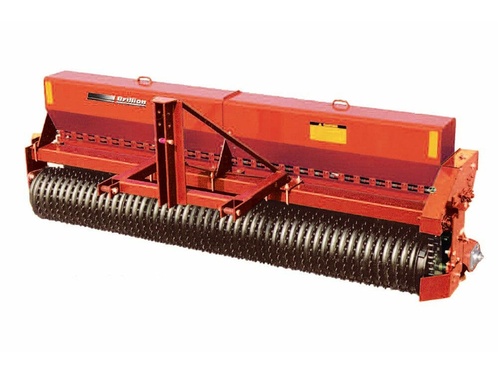 The Brillion Sure Stand concept has survived the test of time and the challenges from many competitors and many different seeding methods. However, the simplicity of the Sure Stand concept is still the best way to seed turf and grasses efficiently. The larger front notched roller firms the seedbed and places shallow indentations into the soil surface. The seed is metered from the seed boxes to free fall onto the deflectors; the deflectors then broadcast the seed across the full width of the seeder. The smaller rear roller, with its notches splitting the middle of the front indentations, squeezes soil around the seed for the ultimate in seed to soil contact and consistent seed placement.