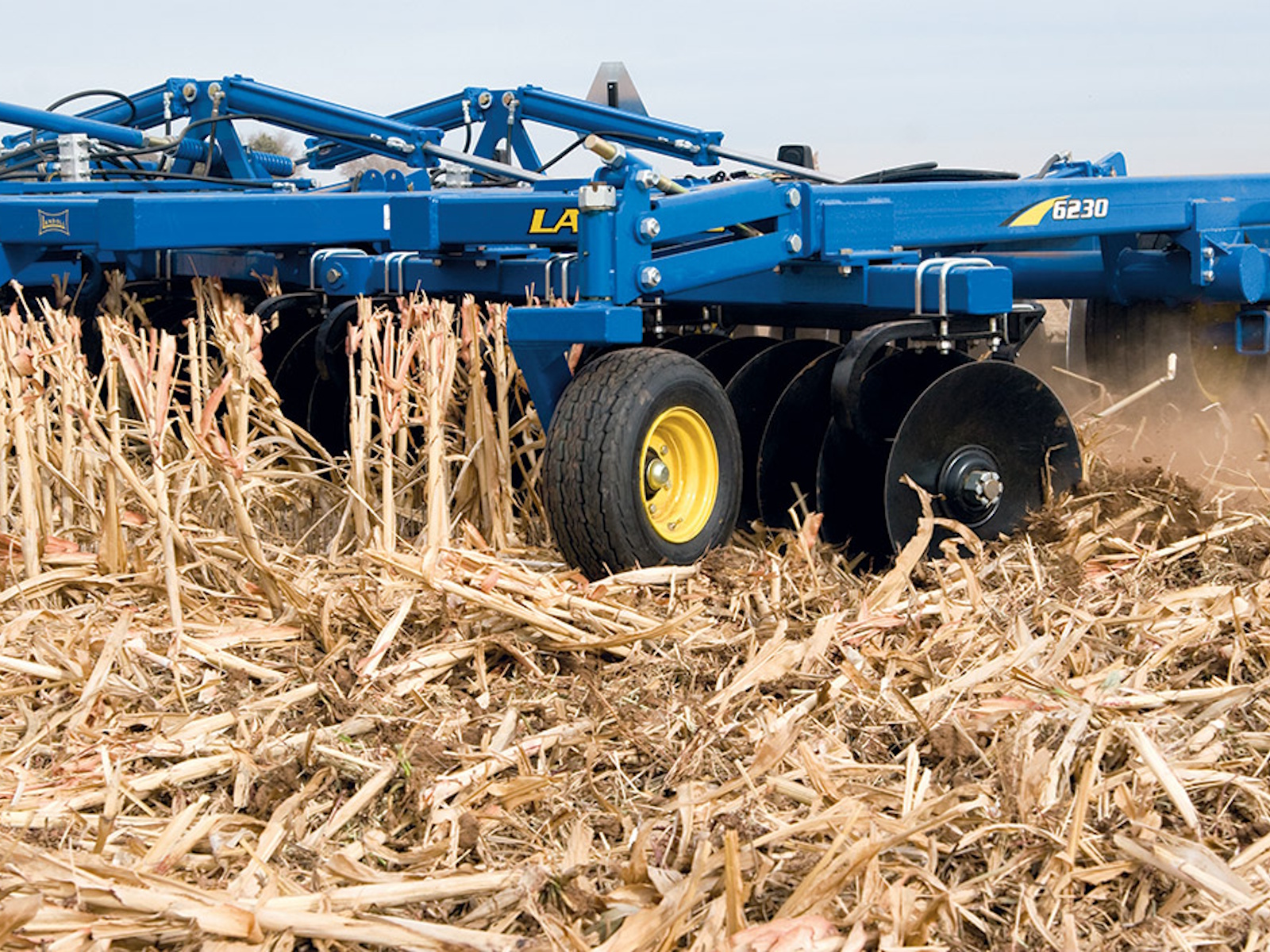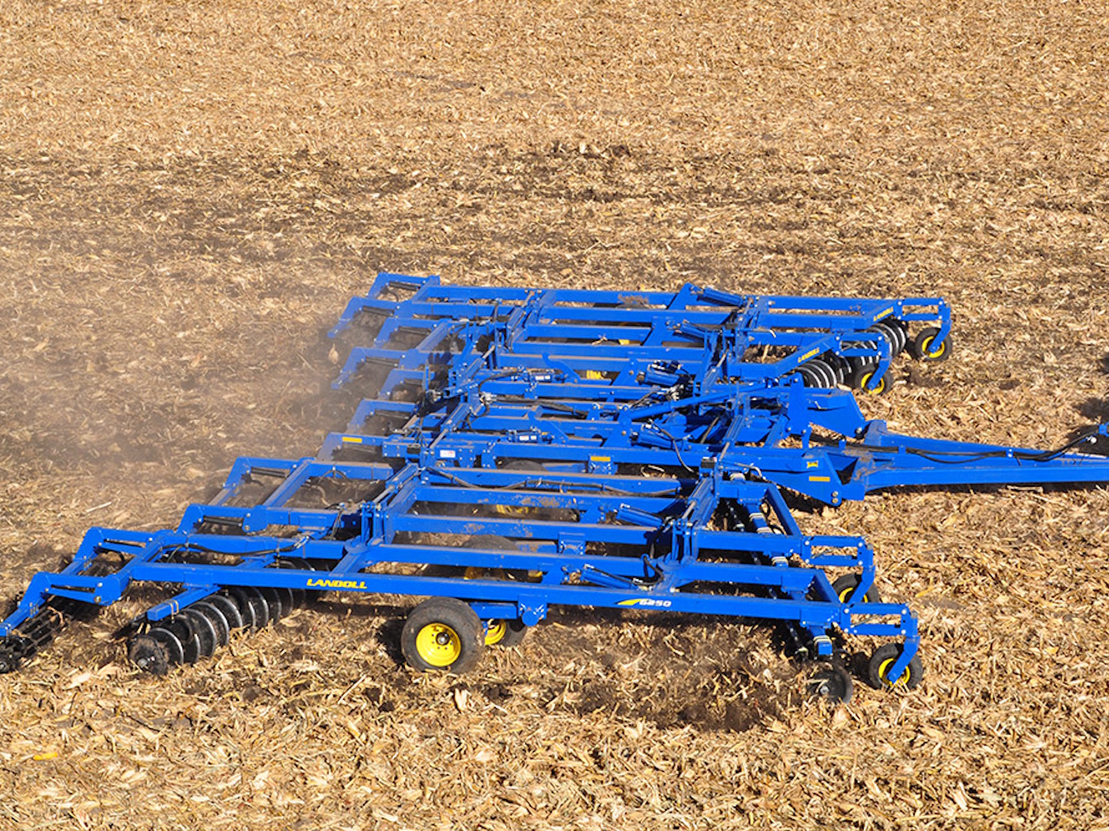 The 6200 Series Tandem Disc Harrow is built in true Landoll style…precision, laser cut frame components that embrace the technology of robotic welding to its fullest. Durability is built-in, not added on. Incorporation of UHMW polymer in the lift axles provides a maintenance-free feature that eliminates daily greasing. Trunnion mount bearings are used throughout the disc assemblies and are covered by a 3-year warranty. The self-leveling hitch and the single point depth control add to the list of items that extend the reliability beyond the competition.