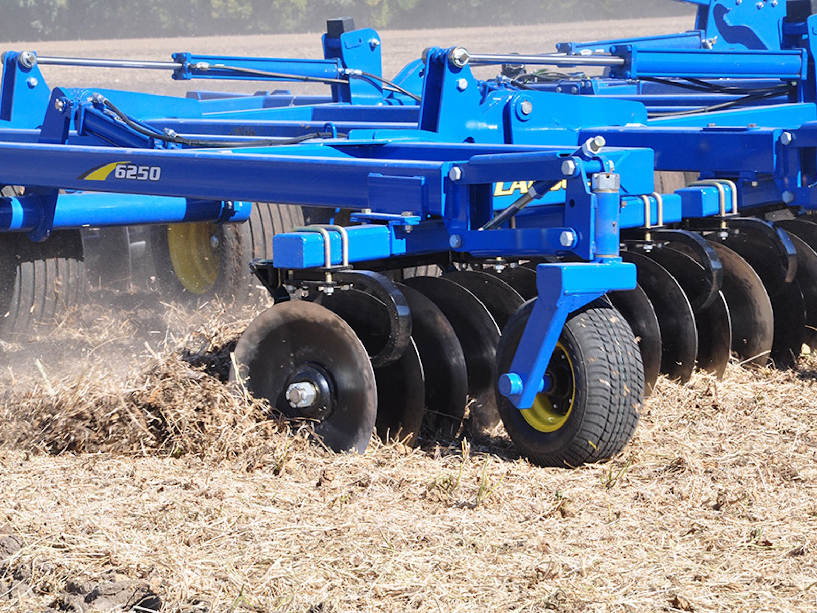 The 6200 Series Tandem Disc Harrow is built in true Landoll style…precision, laser cut frame components that embrace the technology of robotic welding to its fullest. Durability is built-in, not added on. Incorporation of UHMW polymer in the lift axles provides a maintenance-free feature that eliminates daily greasing. Trunnion mount bearings are used throughout the disc assemblies and are covered by a 3-year warranty. The self-leveling hitch and the single point depth control add to the list of items that extend the reliability beyond the competition.