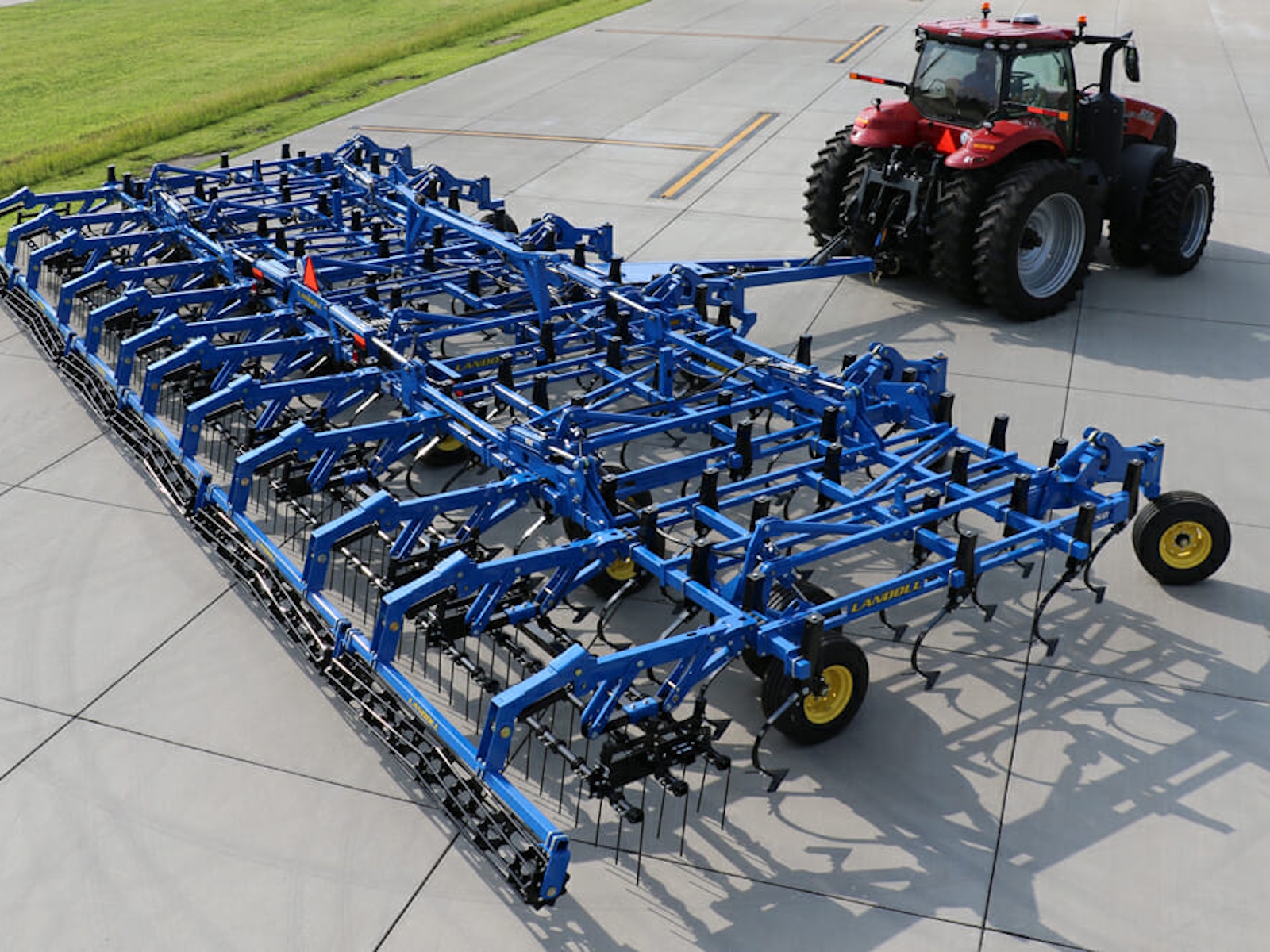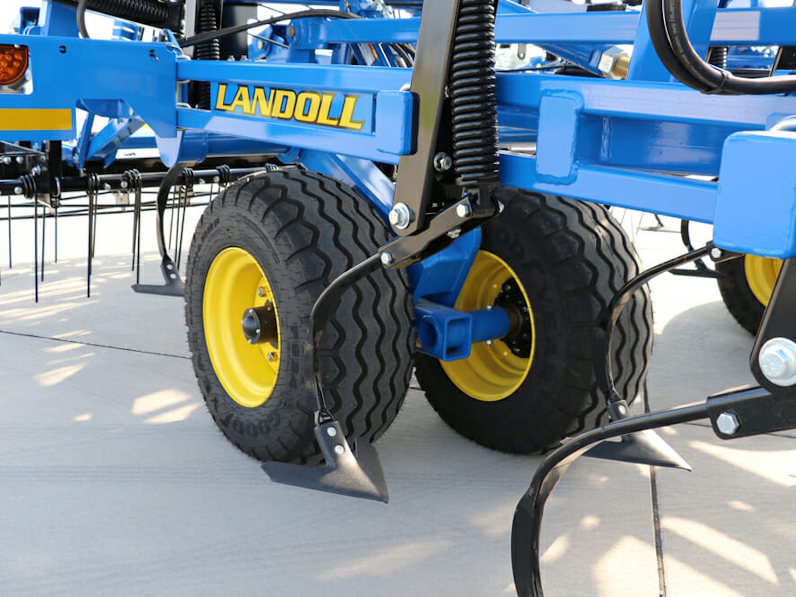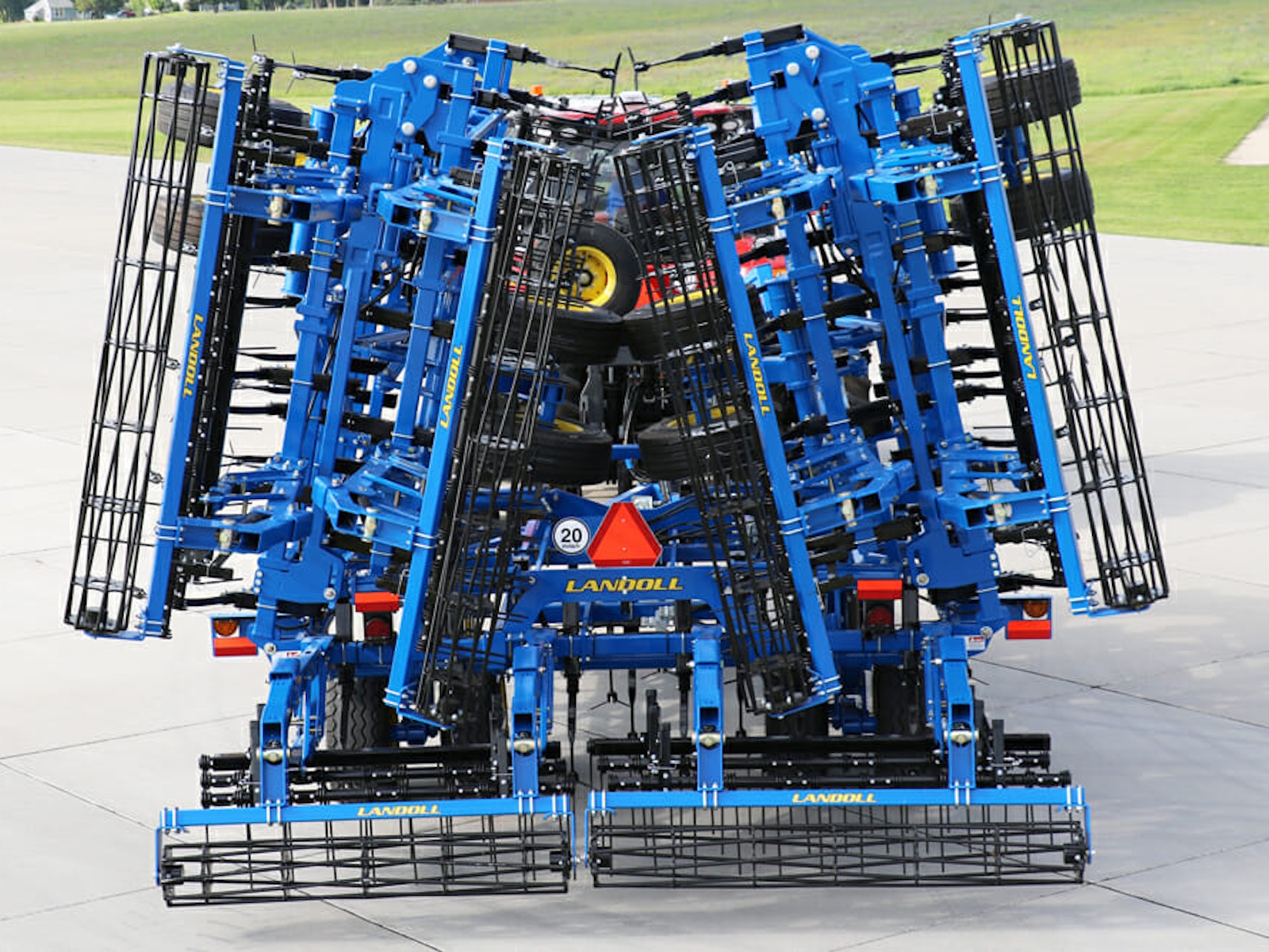 The 9000 Series is available in sizes from 20’6” to 50’6”. Landoll offers a variety of optional rear leveling devices; choose from a 4-Row Coil Tine, 5-Row Spike, 3-Row Tine and Reel, 3-Bar Spike and Reel or 3-Row Spike and Double Flat Blade Reel . A rear hitch for towing additional implements is also available.