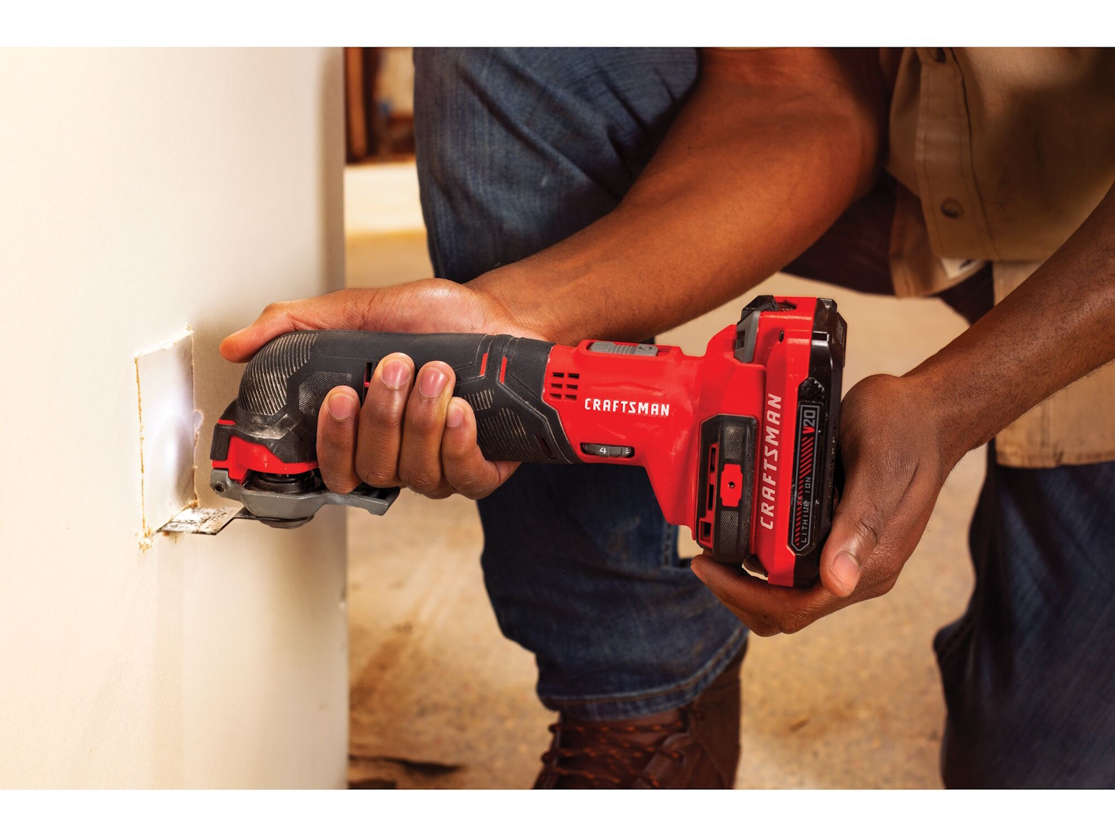 V20* Cordless Oscillating Tool features a universal Tool-Free accessory system which makes adjusting and changing attachments quick and easy. Built with the user in mind, the variable speed dial offers maximum control across a variety of applications and materials while the integrated LED light improves visibility in dark conditions. The tools versatility and multiple attachments will help you accomplish multiple tasks.