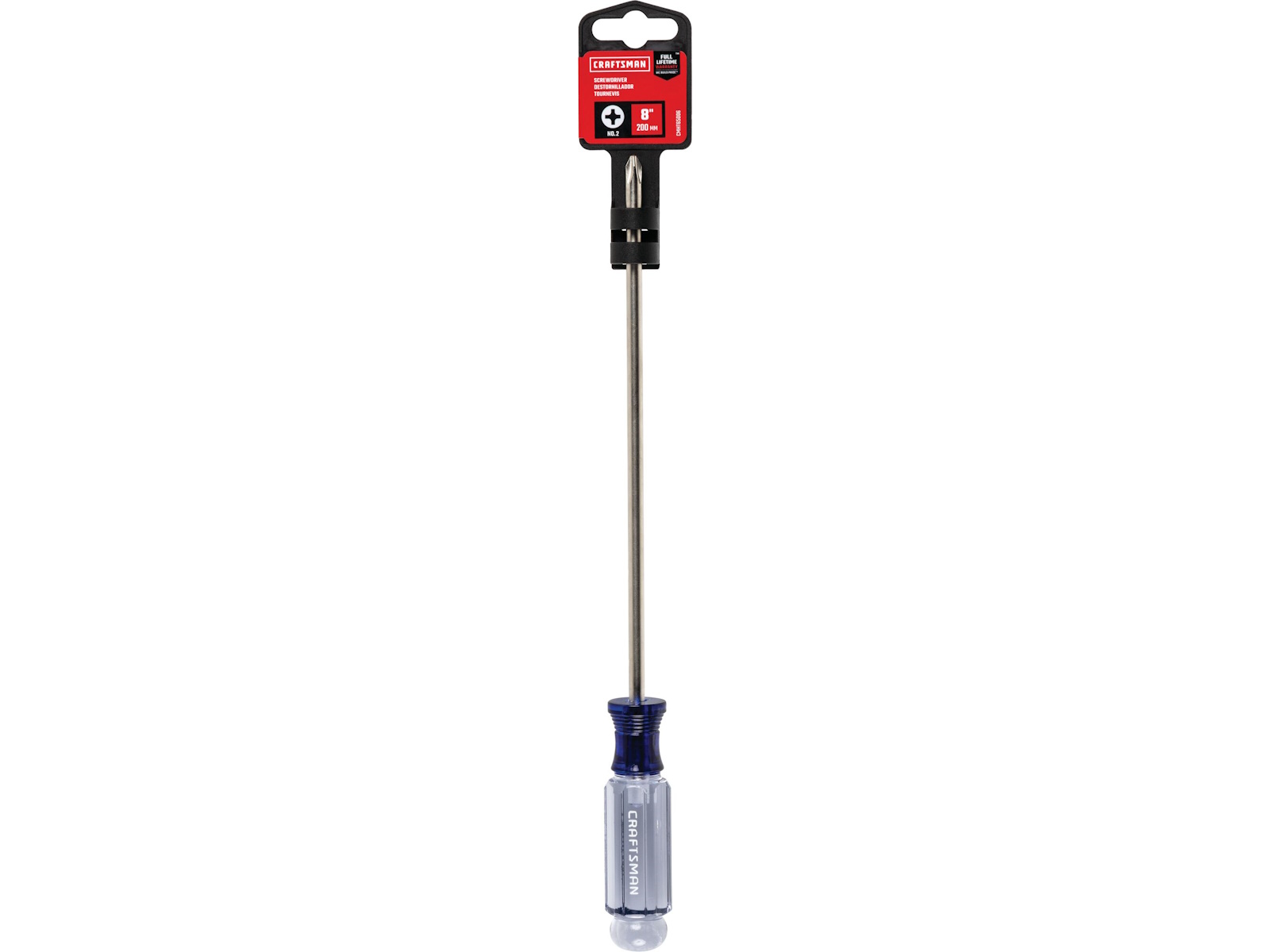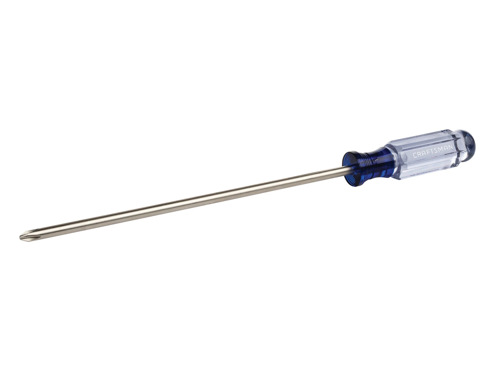 This PH #2 x 8-in. Acetate Screwdriver has an acetate handle featuring a heat-treated, alloy steel blade for increased durability. A comfort optimized handle is ideal for high and low torque applications. The Blade and shaft are coated with a satin-nickel finish to resist corrosion.