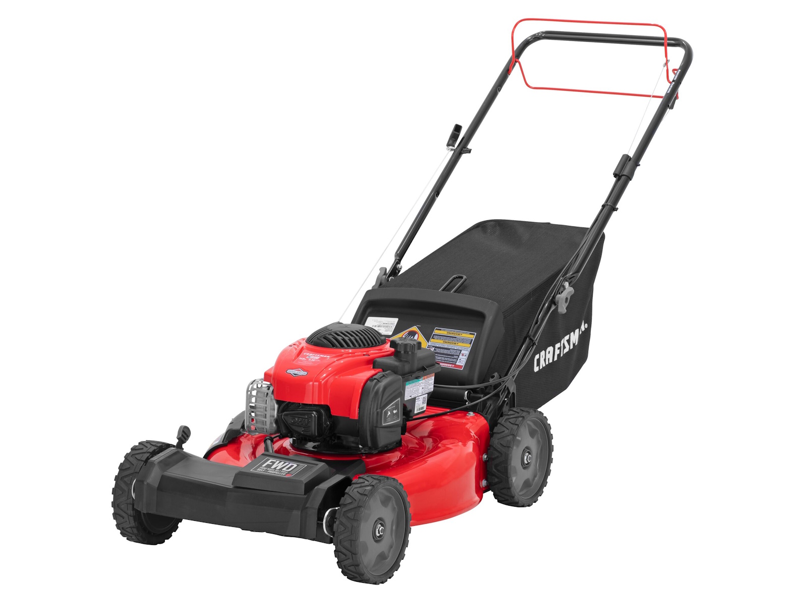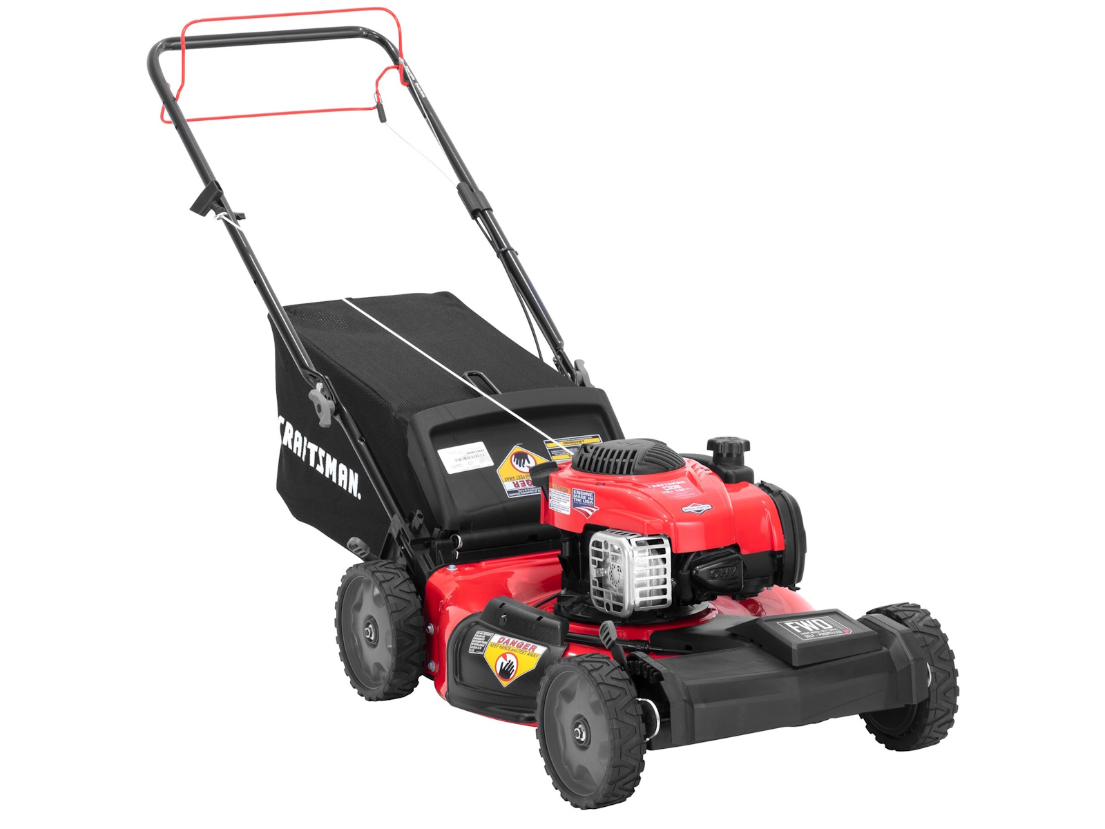 CRAFTSMAN® M220 21-in Self-propelled Gas Push Lawn Mower has a 140cc Briggs and Stratton engine. The self-propelled single speed mower with front wheel drive makes getting the job done easy. The 3-in-1 deck allows you to side discharge, mulch, or rear bag grass clippings. The dual-lever, 6 position height adjustment makes it easy for you to change the cutting height while mowing.