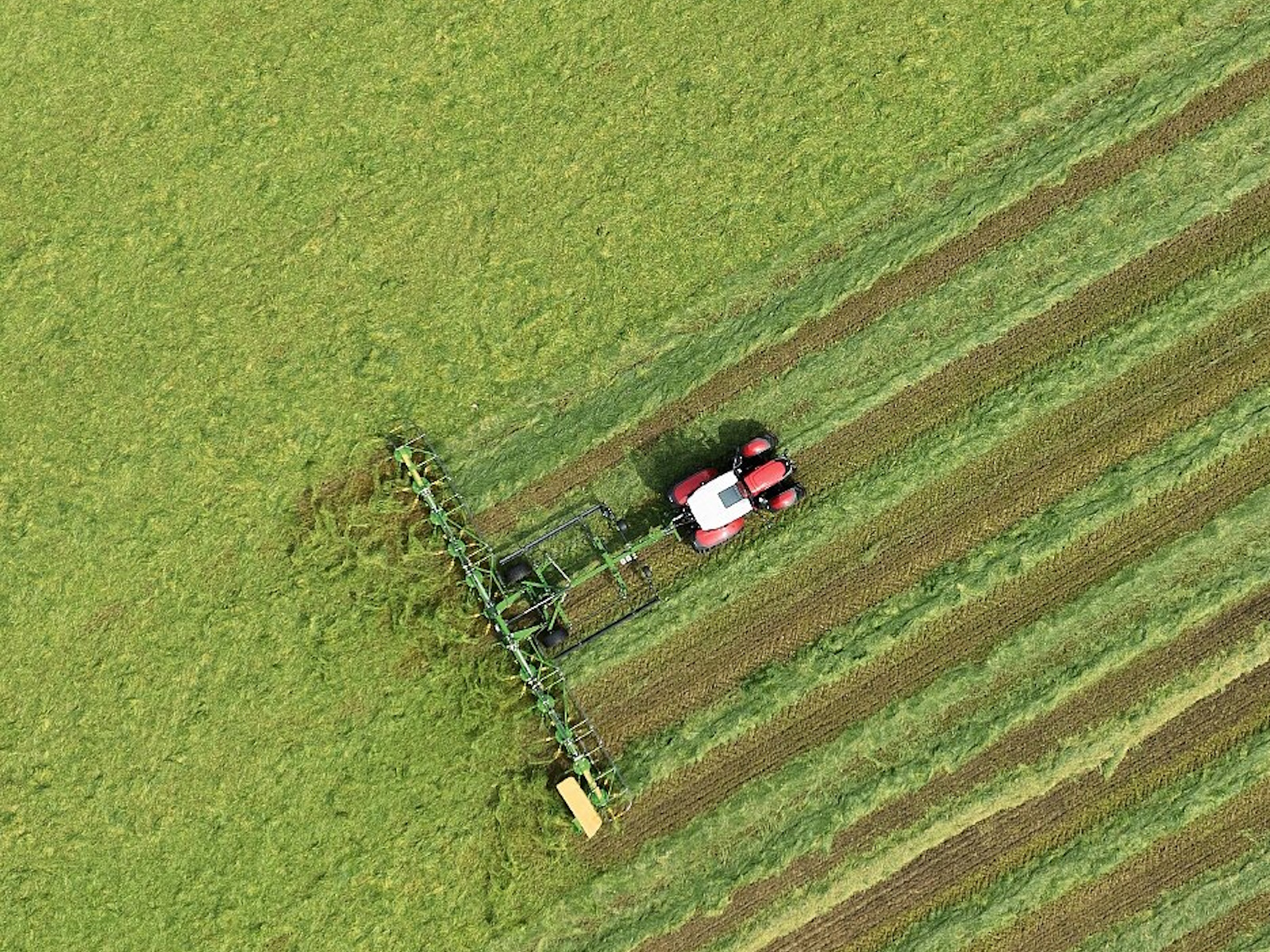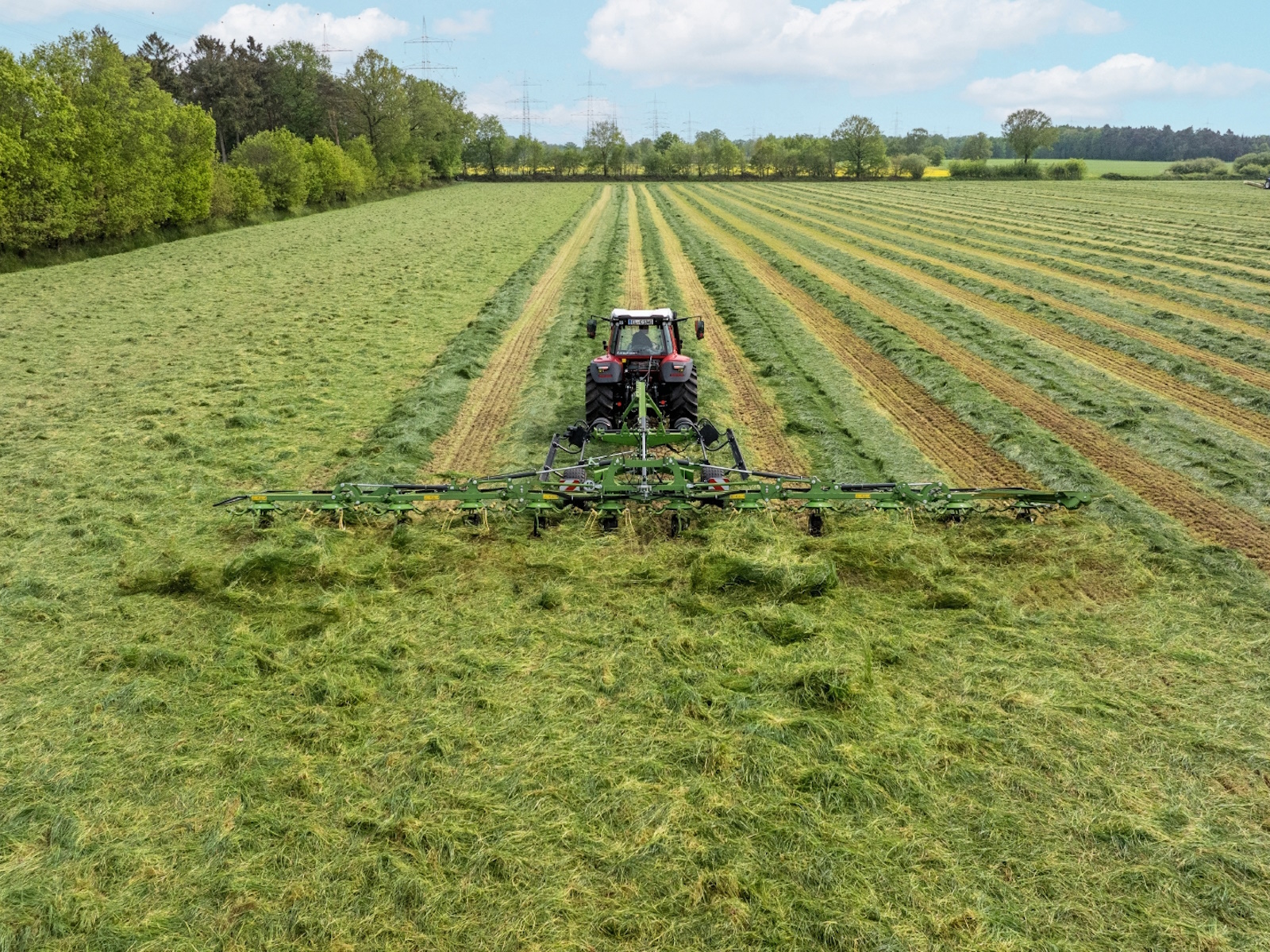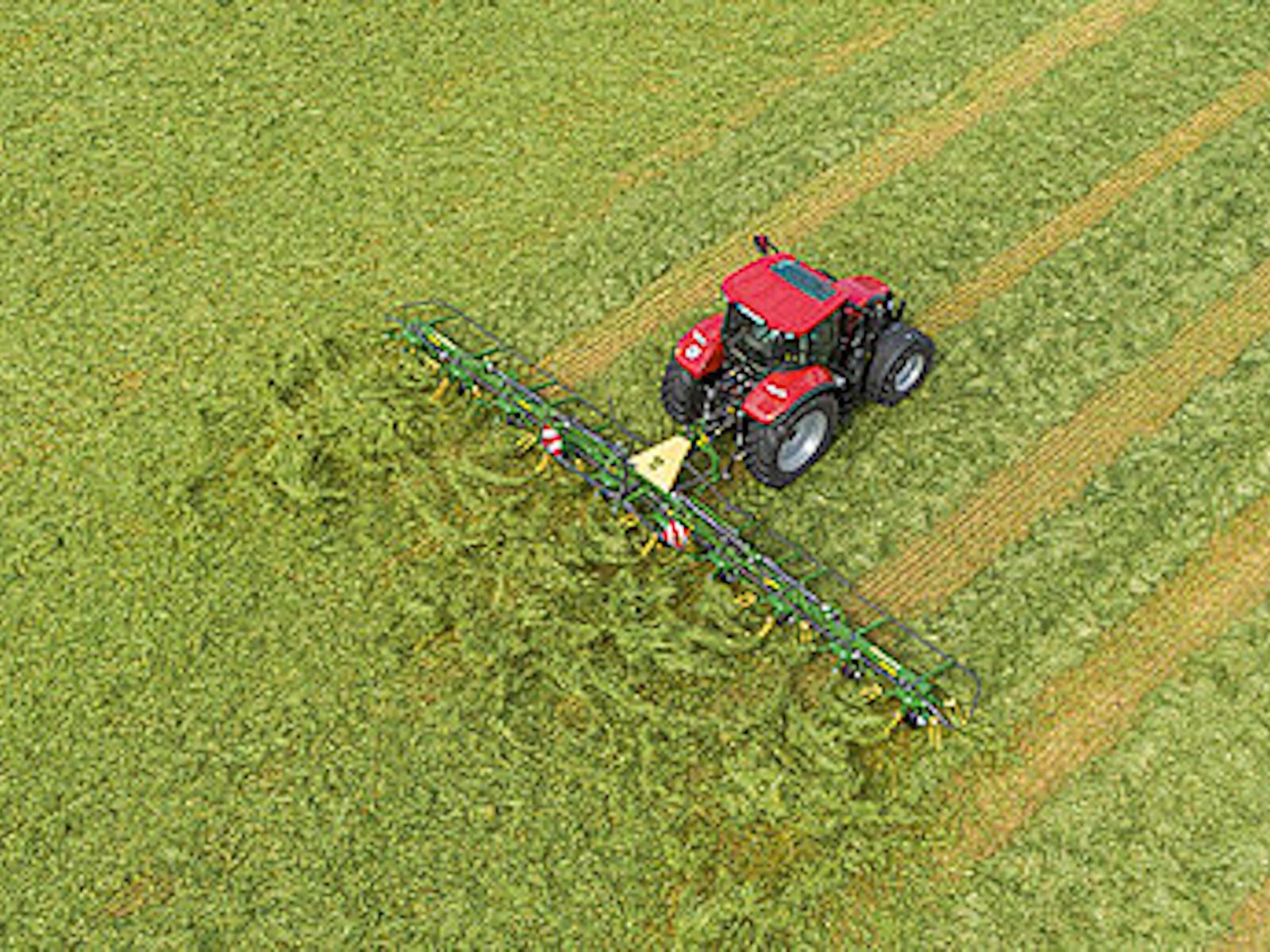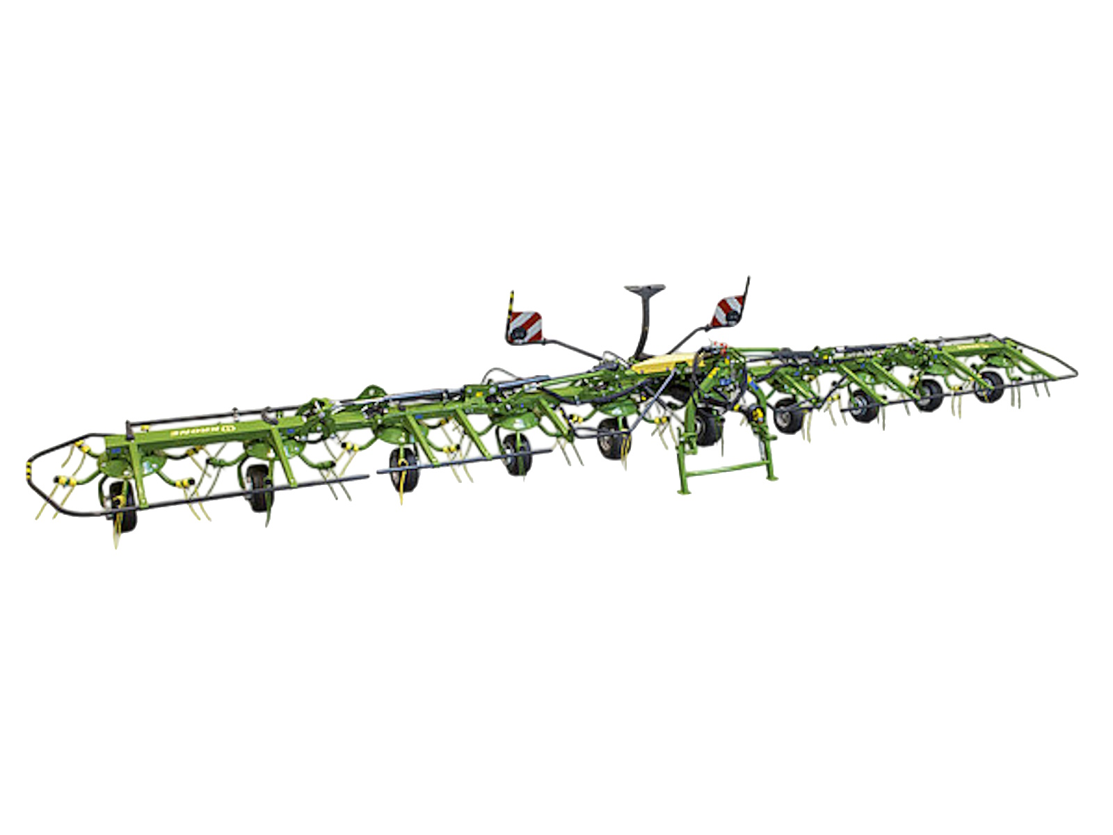 - Large choice of KRONE rotary tedders: 3-point mounted and trailed
