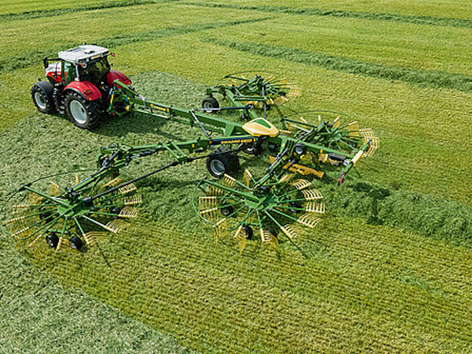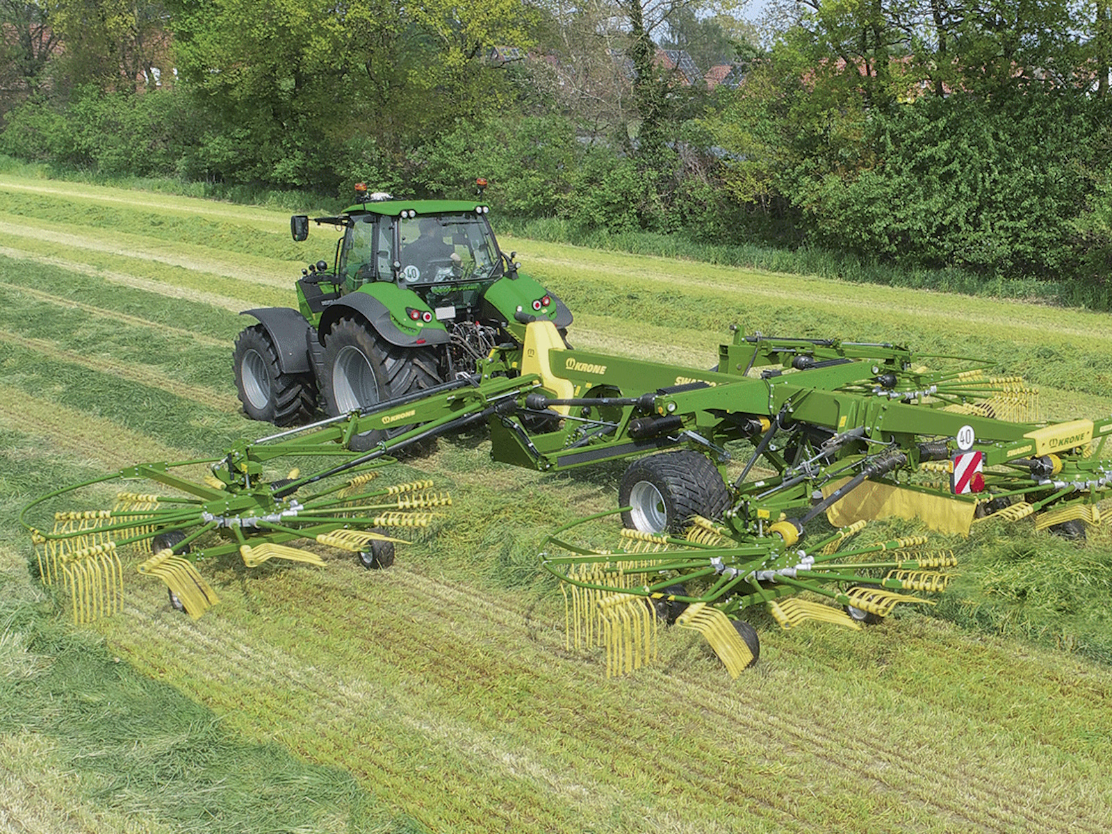 • The KRONE Swadro TC program of rotary rakes lines up the largest number center delivery rakes on the market