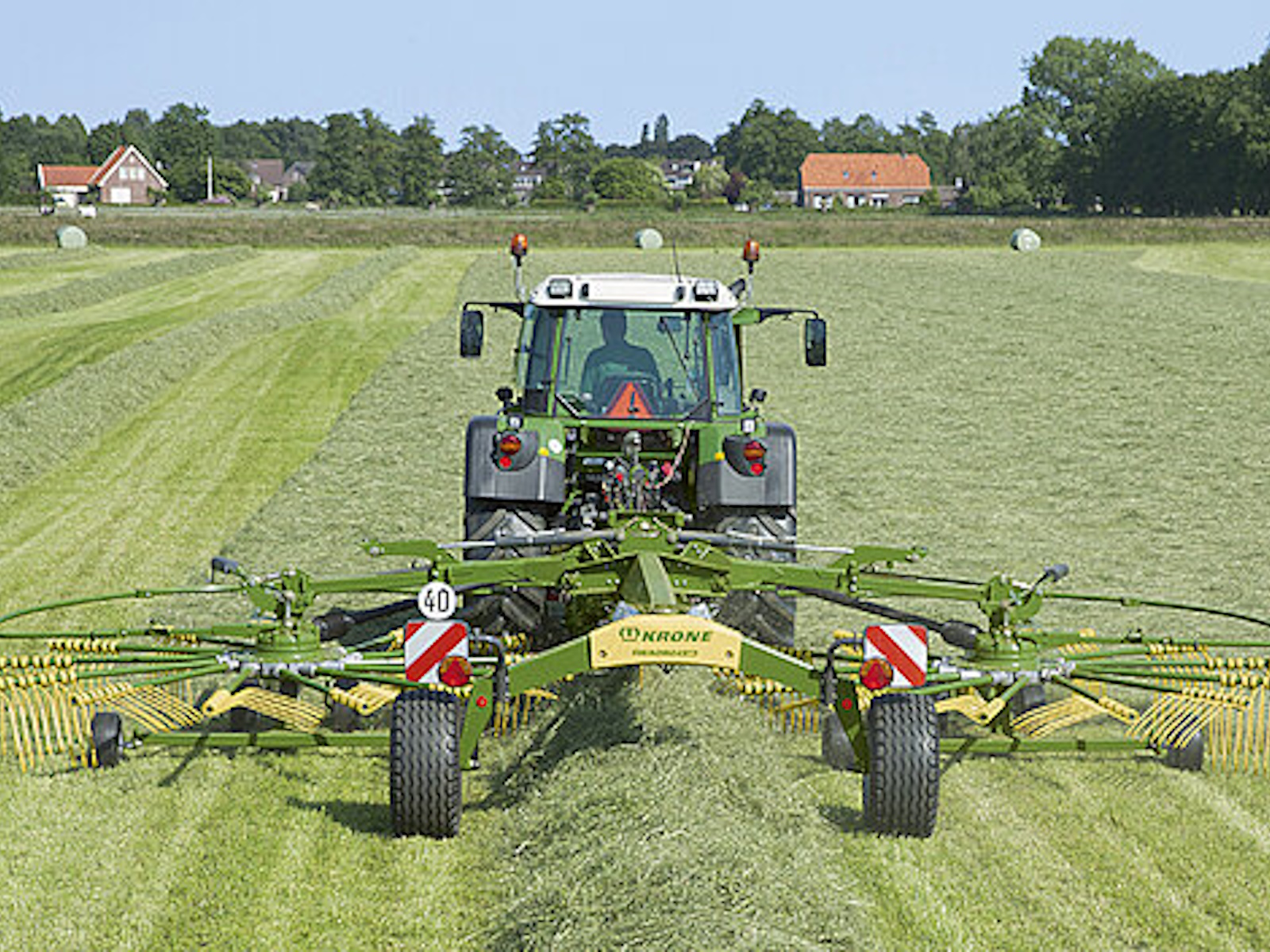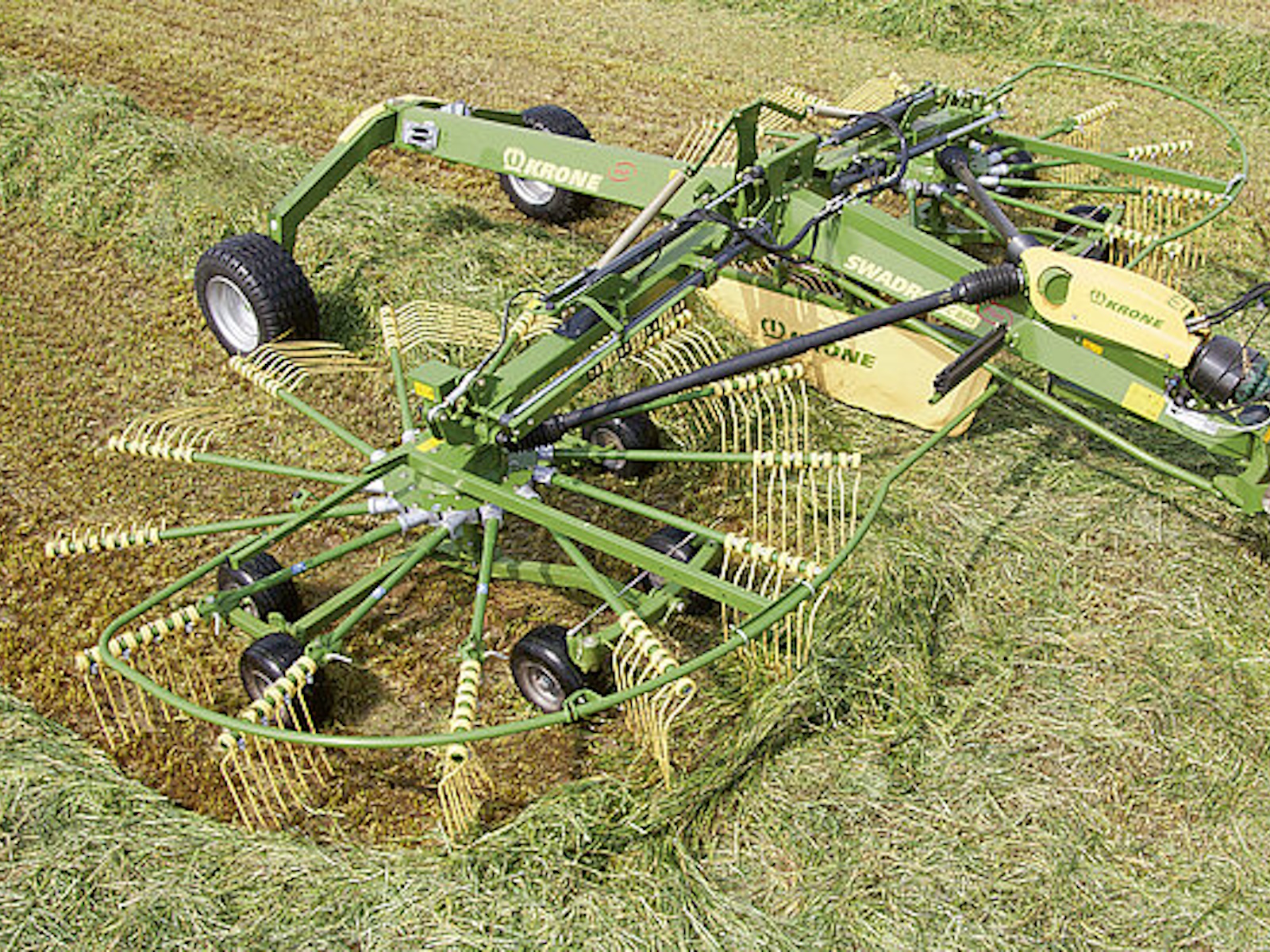 KRONE center delivery rotary rakes – the most comprehensive offer on the market. The KRONE Swadro TC line-up of rotary rakes offers the largest choice of center delivery rakes in the market. Choose from an enormous variety of models and options – from the entry model, the Swadro TC 640 twin rotor rake as the best option for small and hilly fields, to the unique six-rotor unit, the Swadro 2000 that offers maximum efficiency and capacity.
