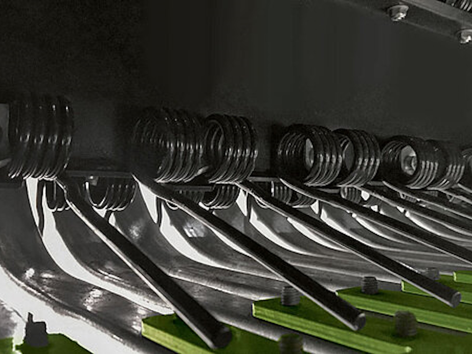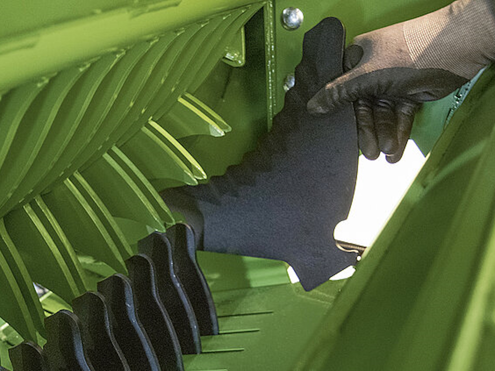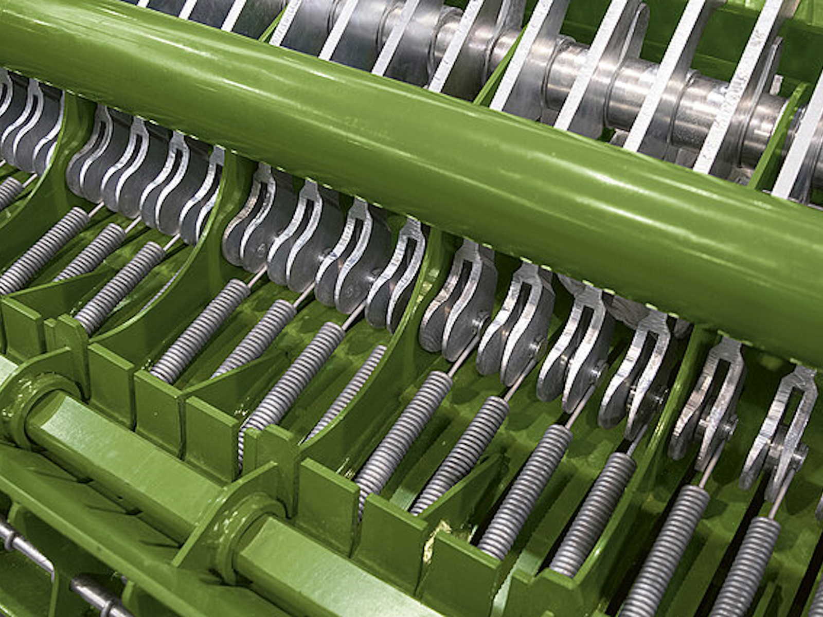 KRONE VariPack V 165 XC Pro and V 190 XC Pro have a 26-blade cutting system that can be selected in groups of 0, 13, 13, or 26 blades to give cutting lengths of 84 mm or 42 mm. The change is made fast and simple for easy adjustment to varying conditions. Also, the option of using the same number of blades in two different groups allows you to use sharp blades all day long – also throughout very long working days. Before a group of blades is selected, the selector shaft makes a 360° revolution which removes the debris in this area ensuring continued precision control of each individual blade.