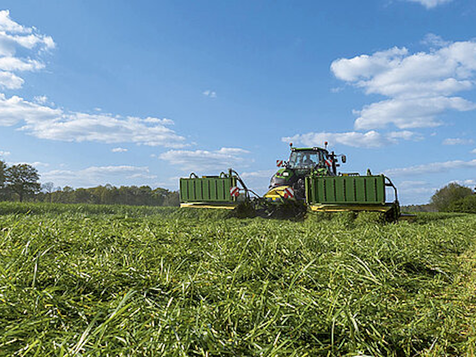 KRONE has once again delivered a major success with its latest development EasyCut B 1250 Fold. This butterfly combination works highly efficiently with a maximum working width of up to 12.50 metres and is thus optimally adapted to the sward-protecting CTF (Controlled Traffic Farming) concept via precise track guidance. Thanks to its technically-impressive design, the mower combination can be easily transported on roads: The unique and patented folding mechanism allows mower units to be folded up very compactly.