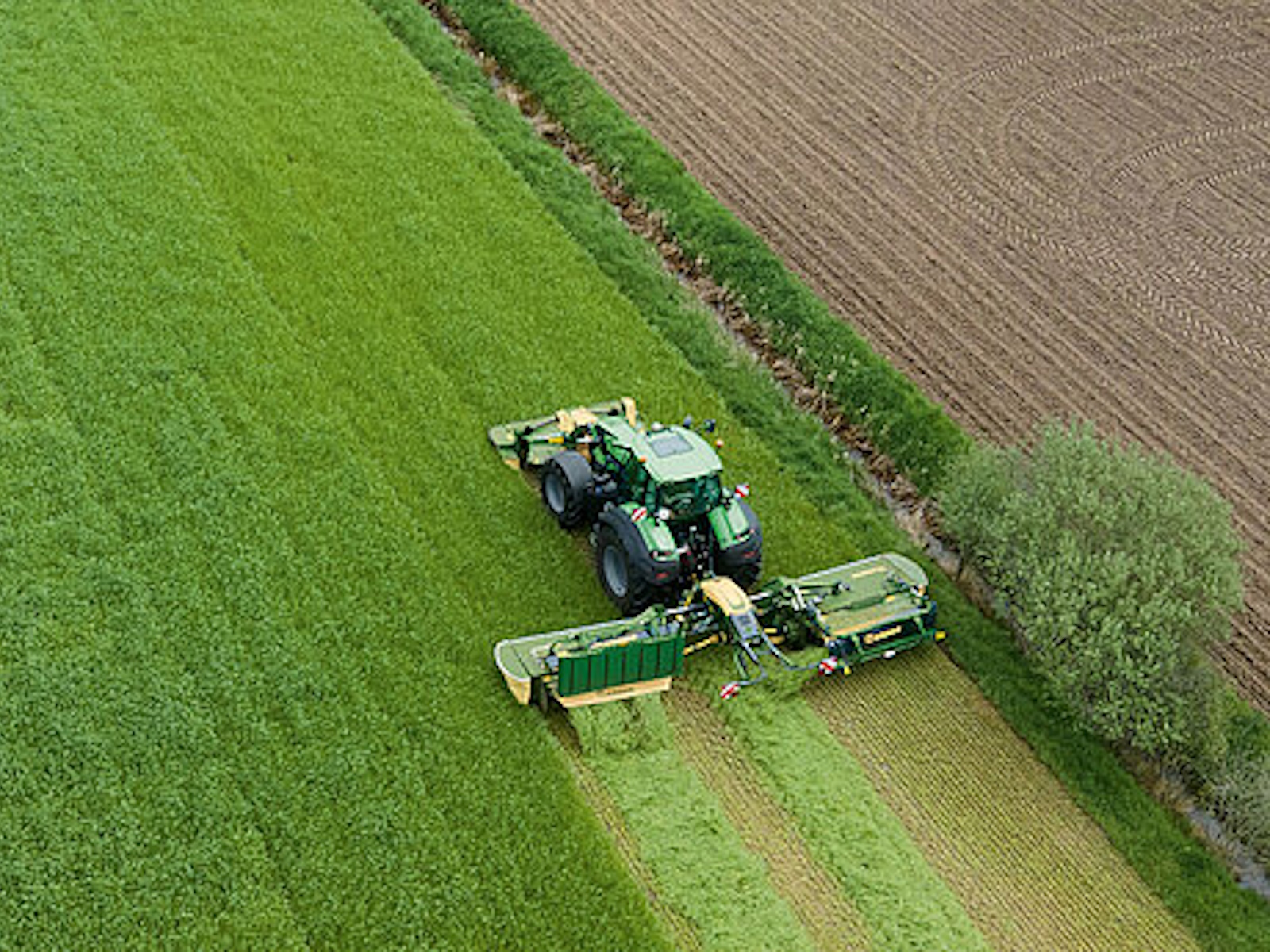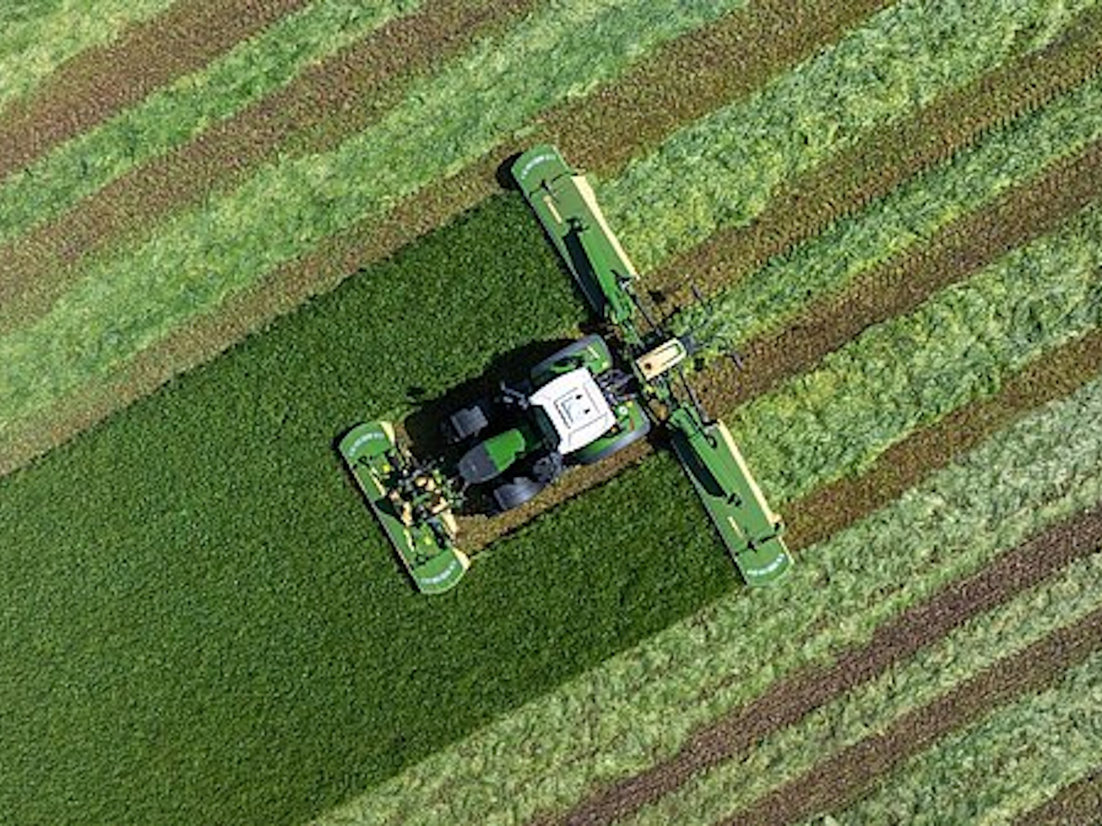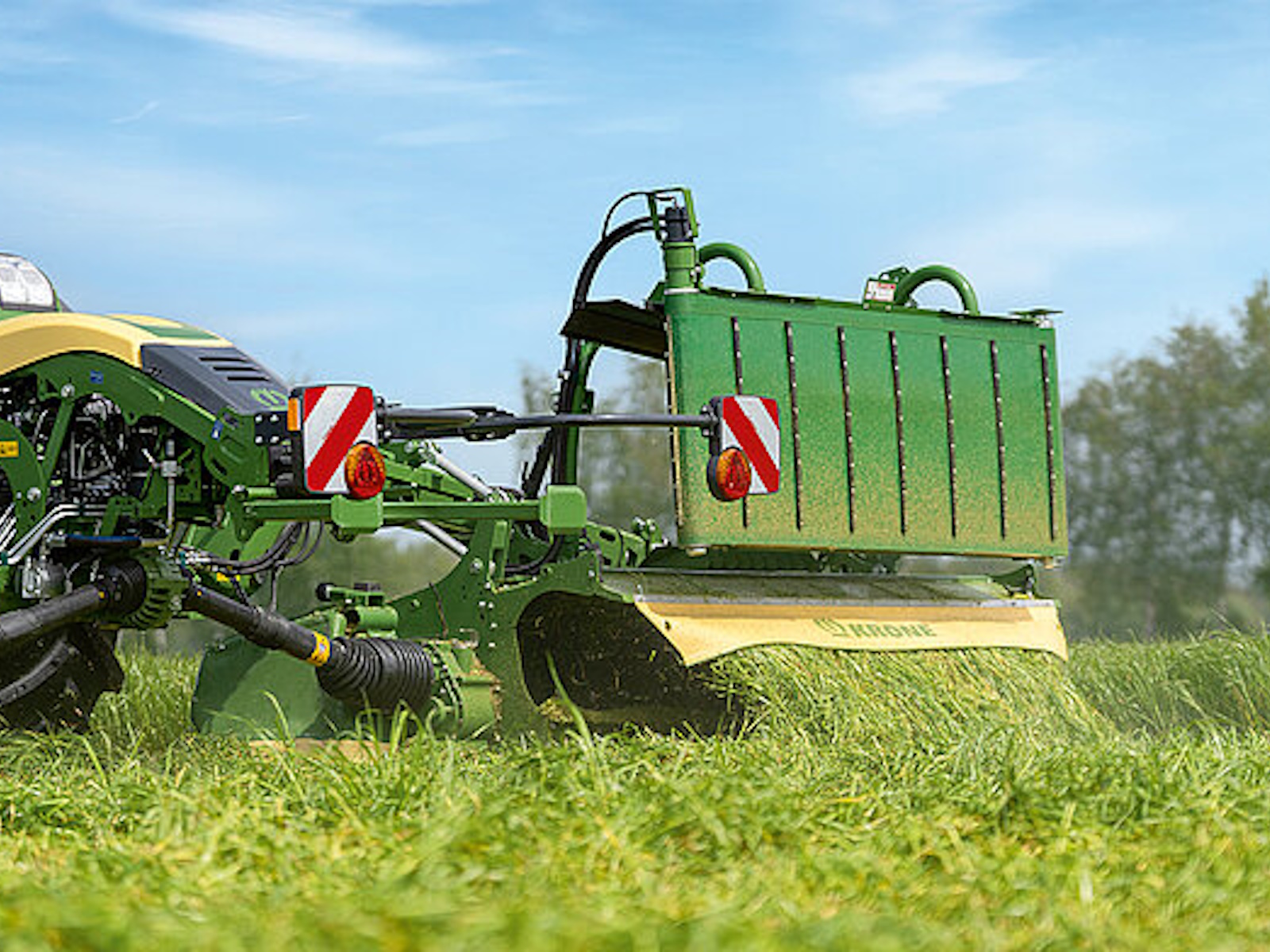KRONE has once again delivered a major success with its latest development EasyCut B 1250 Fold. This butterfly combination works highly efficiently with a maximum working width of up to 12.50 metres and is thus optimally adapted to the sward-protecting CTF (Controlled Traffic Farming) concept via precise track guidance. Thanks to its technically-impressive design, the mower combination can be easily transported on roads: The unique and patented folding mechanism allows mower units to be folded up very compactly.