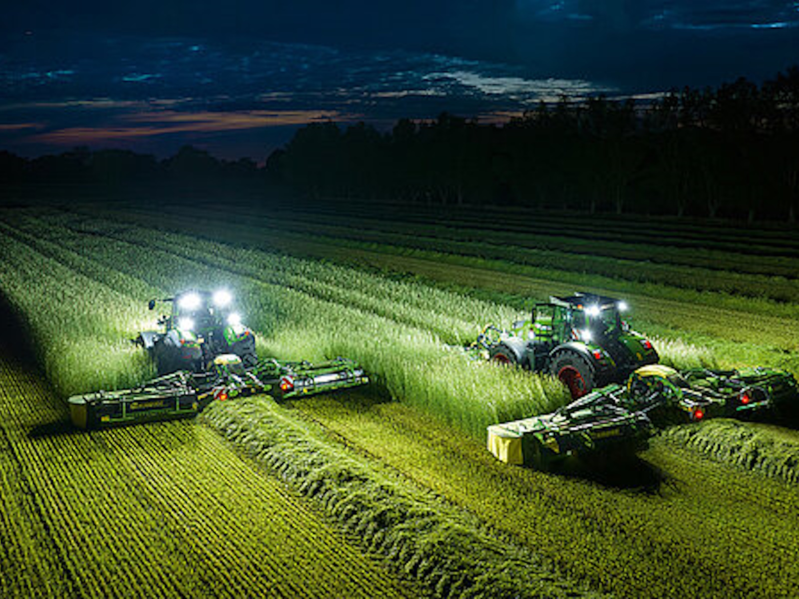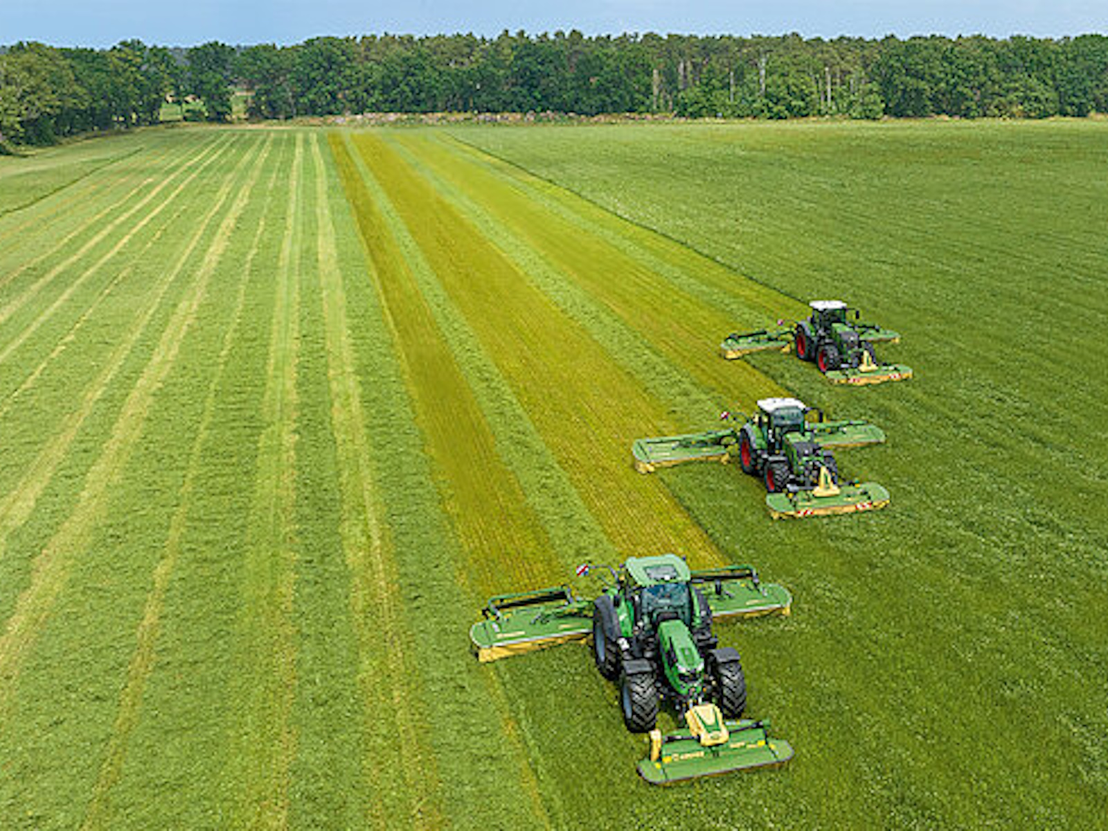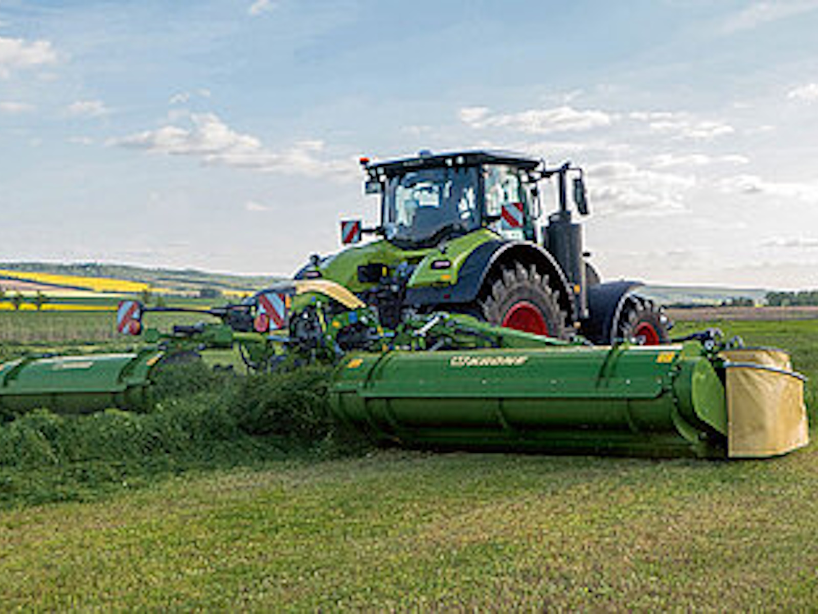 KRONE has once again delivered a major success with its latest development EasyCut B 1250 Fold. This butterfly combination works highly efficiently with a maximum working width of up to 12.50 metres and is thus optimally adapted to the sward-protecting CTF (Controlled Traffic Farming) concept via precise track guidance. Thanks to its technically-impressive design, the mower combination can be easily transported on roads: The unique and patented folding mechanism allows mower units to be folded up very compactly.