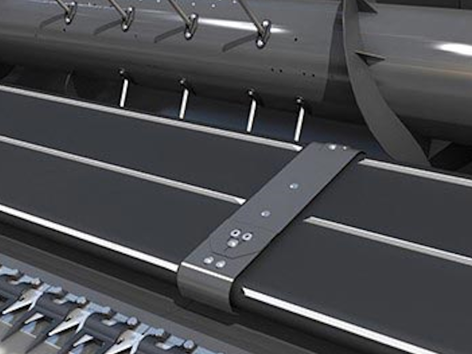 • The knife is a massive 1.14 m from the table auger, so vision and performance are optimum. The rugged PowerFlow™ belts power the crop away from the knife and into the main crop elevator at a consistent speed.