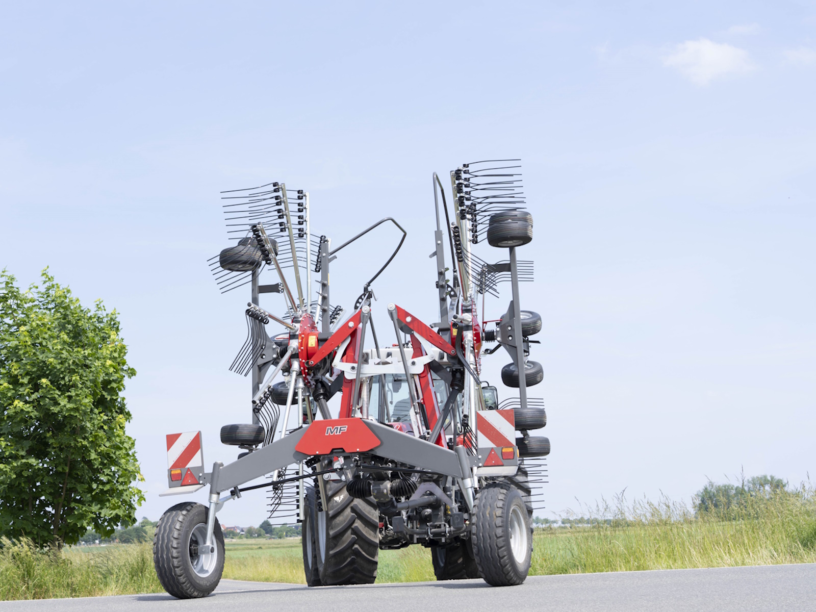 These days, large rakes are key machines in the forage harvesting chain – a failure can result in the stoppage of other harvesting machinery, and could be the cause of large cost implications and disruptions. You should therefore entertain no compromises with your new rake. Massey Ferguson has combined its years of experience with the latest technical knowledge and, from these, developed a range of high performance large-scale rakes.