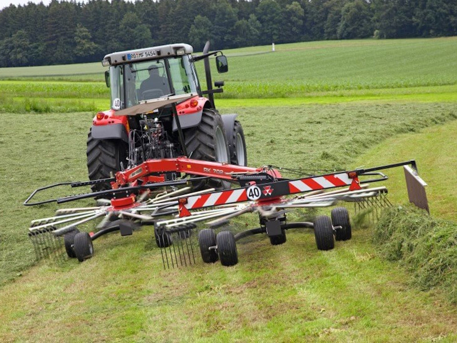 Automatic working width pre-selection, effective raking action, precisely placed swaths and quick and safe travel from field to field, are all offered by the MF RK 662, MF RK 762, MF RK 862 and MF RK 1002 two-rotor central delivery rakes. They can master any working situation. With the optional 6-wheel contact-sensing chassis and the cardanic rotor suspension, tidy and loss-free raking results are always achieved. The best starting point for your high quality forage.