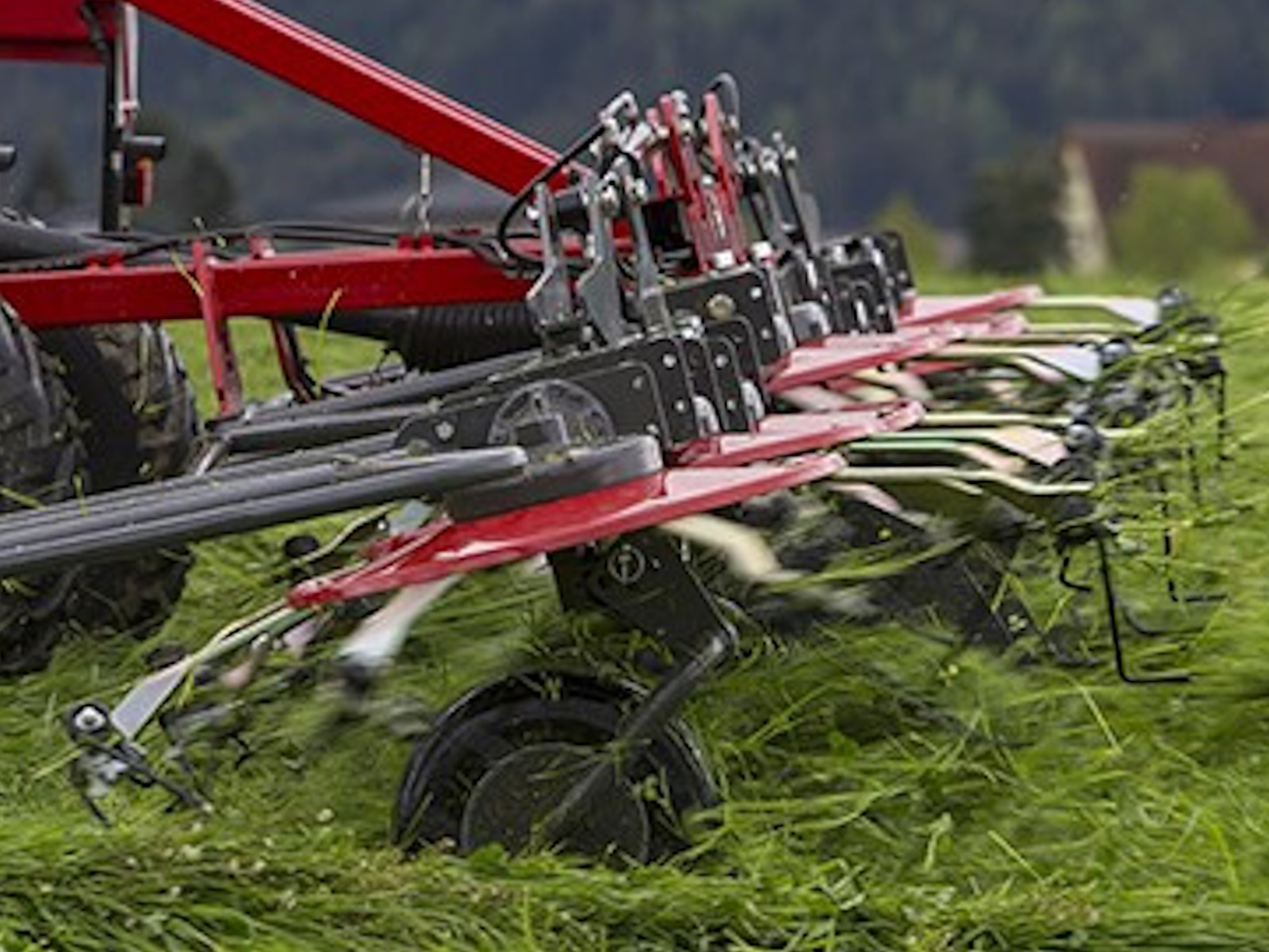 - Longer tines rotate 12% faster and work further down the crop, collecting the heavier, wetter material and throwing it further - onto the drier material to enhance wilting.