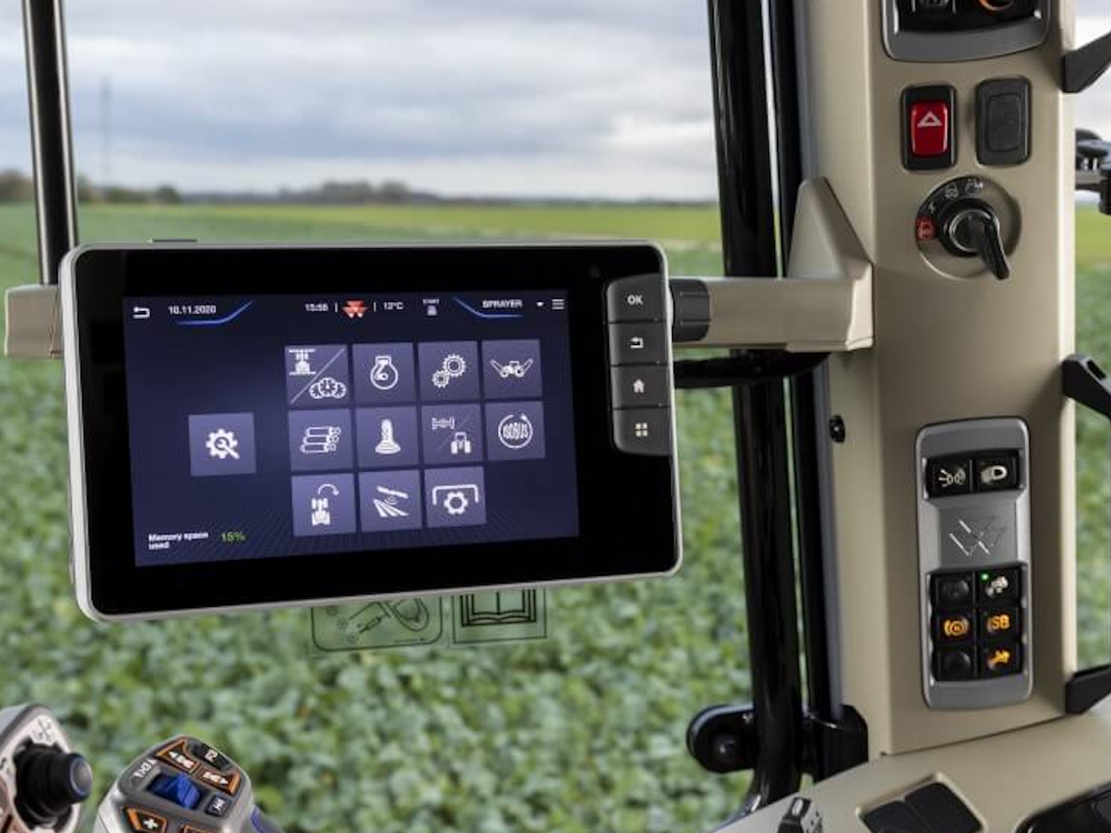 - The clear, sharp and easy to read 70mm x 52mm colour screen shows a range of information including tractor performance, working area, working distance, fuel and AdBlue® consumption as well as engine and transmission temperature.