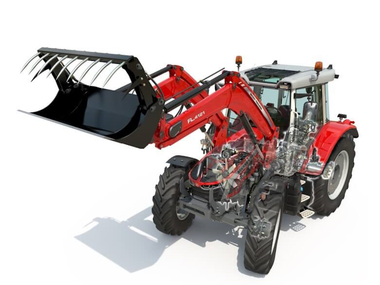 - Best-in-class visibility, down to just 4m ahead of the tractor, over the slim dashboard and narrow steep-nose bonnet, combines with great manoeuvrability and a choice of three hydraulic systems to provide exceptional pressure, flow and response. Left-hand Power Control lever changes direction, shifts speeds and selects neutral, while a choice of joysticks operate the loader, as well as change direction and speeds. MF 5S tractors are now available with factory-fitted loaders or can be ordered loader ready, just requiring the mounting of the loader arms and implement.