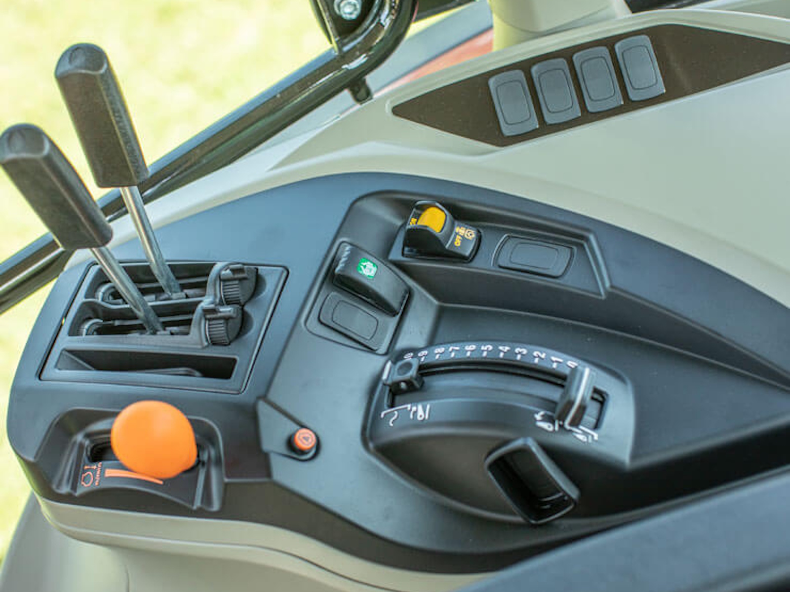 Essential controls are ergonomically positioned for easy operation and comfort. - FENDER-MOUNTED 3-POINT CONTROL