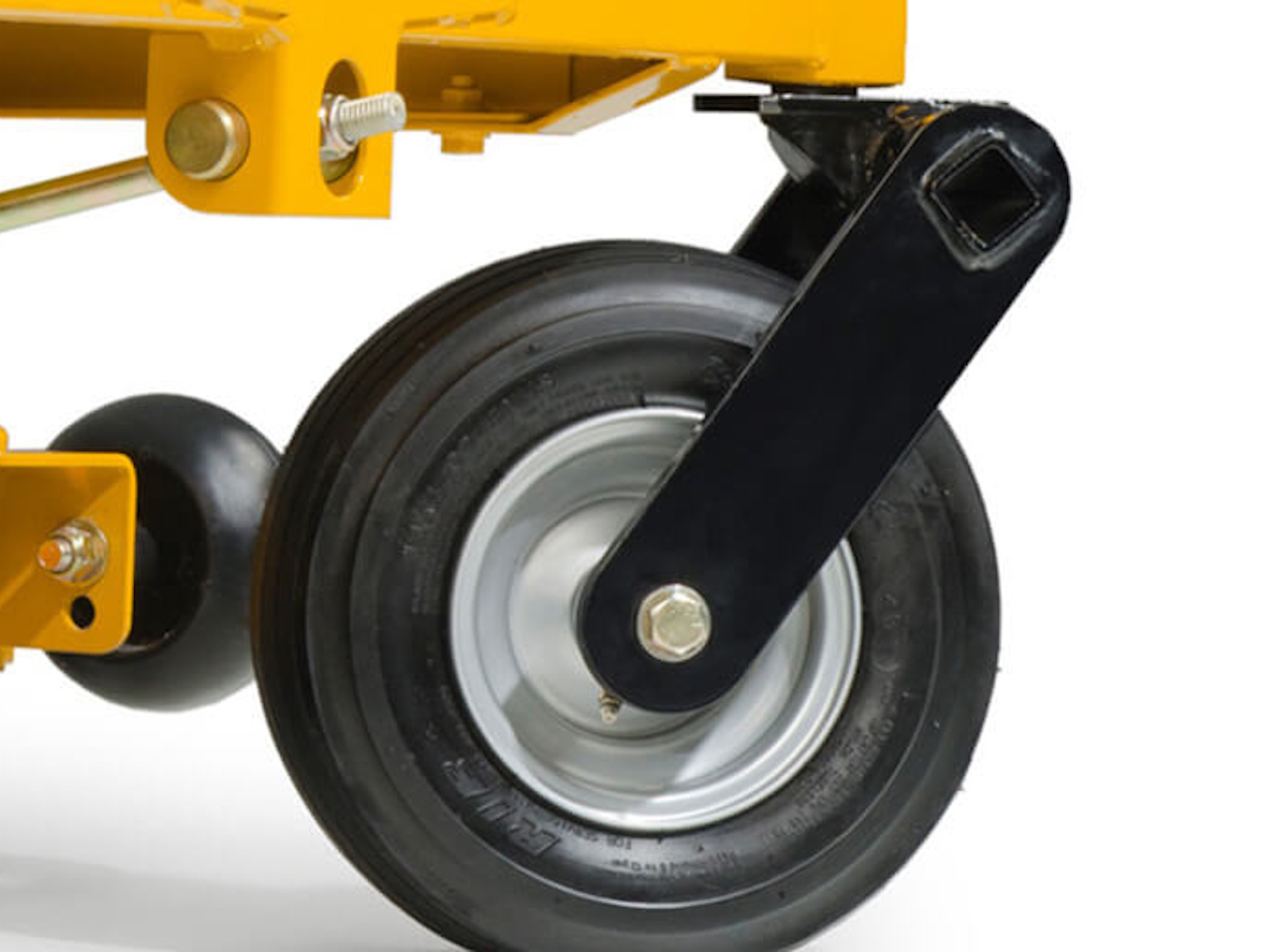- Shock absorbing front caster forks improve operator comfort and provide a more even cut, especially over uneven terrain and at higher speeds.