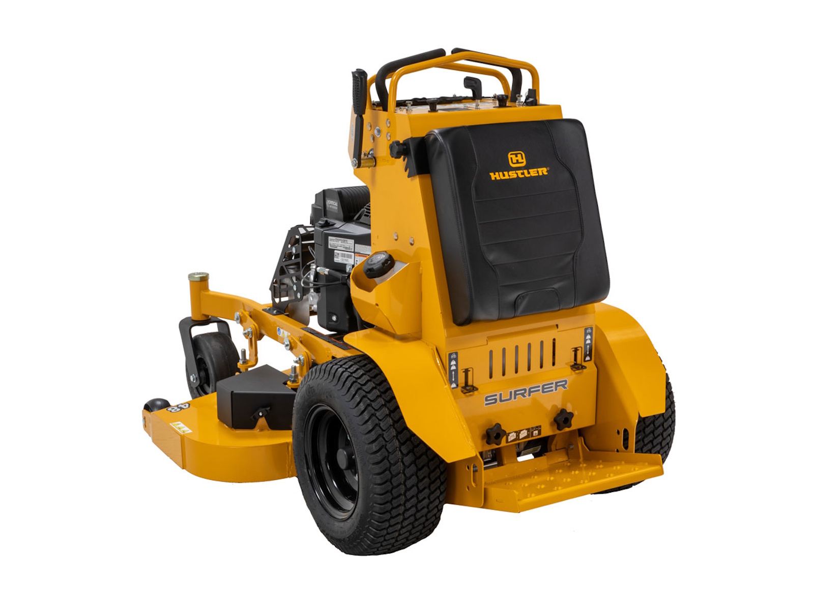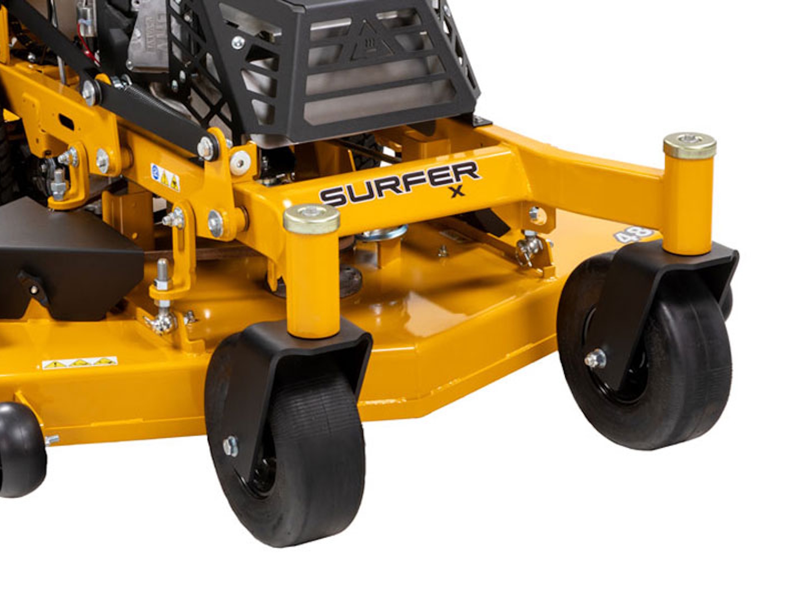 The Surfer X stand-on packs the muscle to stand up to your toughest days. Its rugged 10-gauge fabricated deck is designed to deliver precision cuts that impress, while the compact 34” deck design breezes through most gates and tight spaces. Adjustable hip pads and a suspension platform help to smooth out the ride for user comfort. Easy on-and-off access , contoured controls, simple maintenance, and the confidence of a 4-year/800-hour limited warranty.