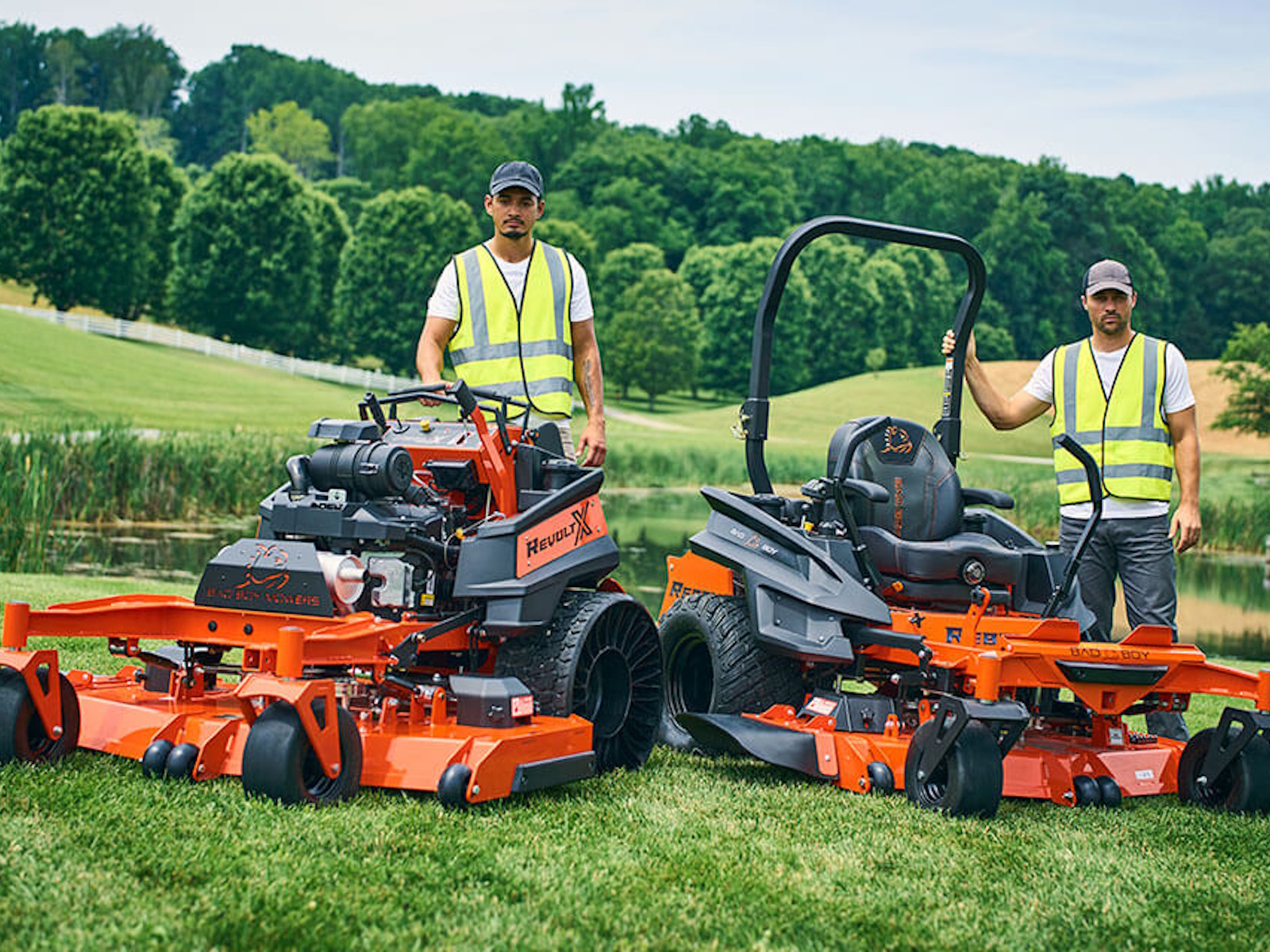 The All-New Bad Boy Revolt X is driven by Hydro-Gear 16cc Pumps with 18 cubic inch Wheel Motors include a Cooling Fan on Pumps and Dual Independent 2.5 Quart Hydraulic Fluid Reservoirs, this hydraulic system is designed for performance and longevity. Paired with the Vanguard 40HP EFI and Kawasaki 38.5HP FX1000 EFI Power plants, the Revolt X runs cleaner and cooler for better performance and life expectancy. As for innovative features, you'll love the new variable deck lift adjustment. Now you can change the height of cut with just one touch, giving you the power to make on-the-fly adjustments quickly and easily. Revolt. Powerful performance in a smaller package.