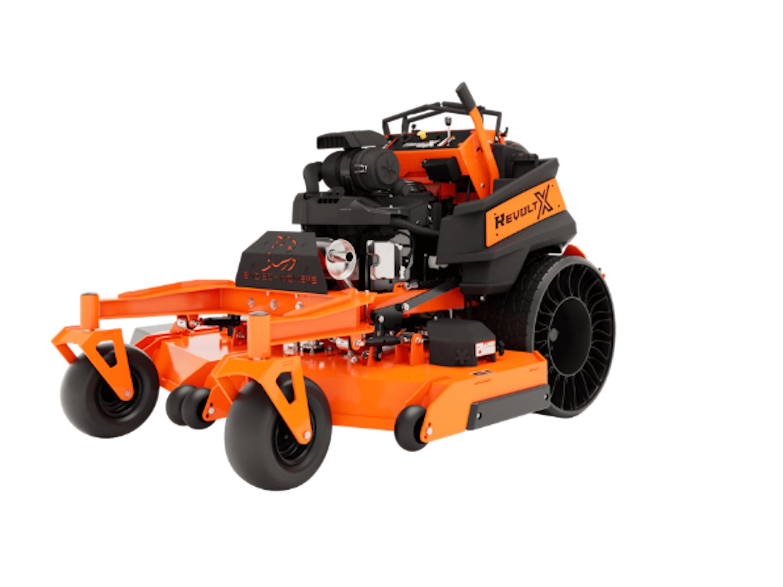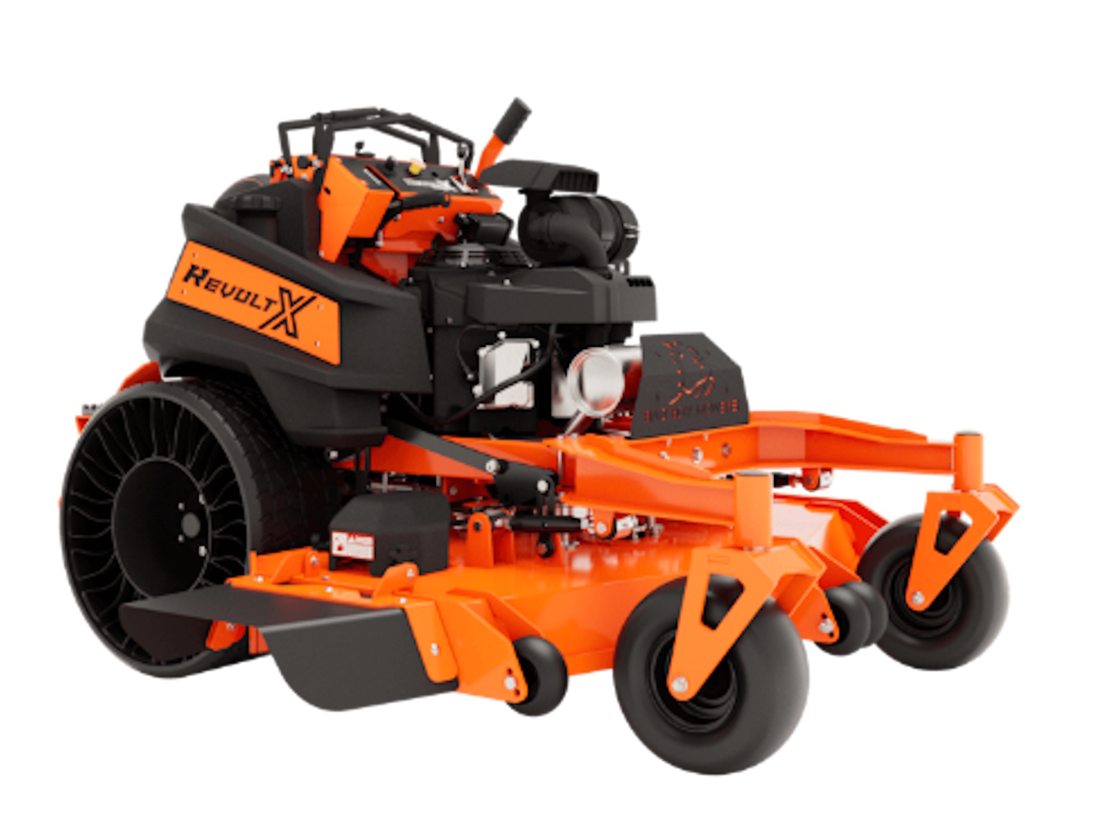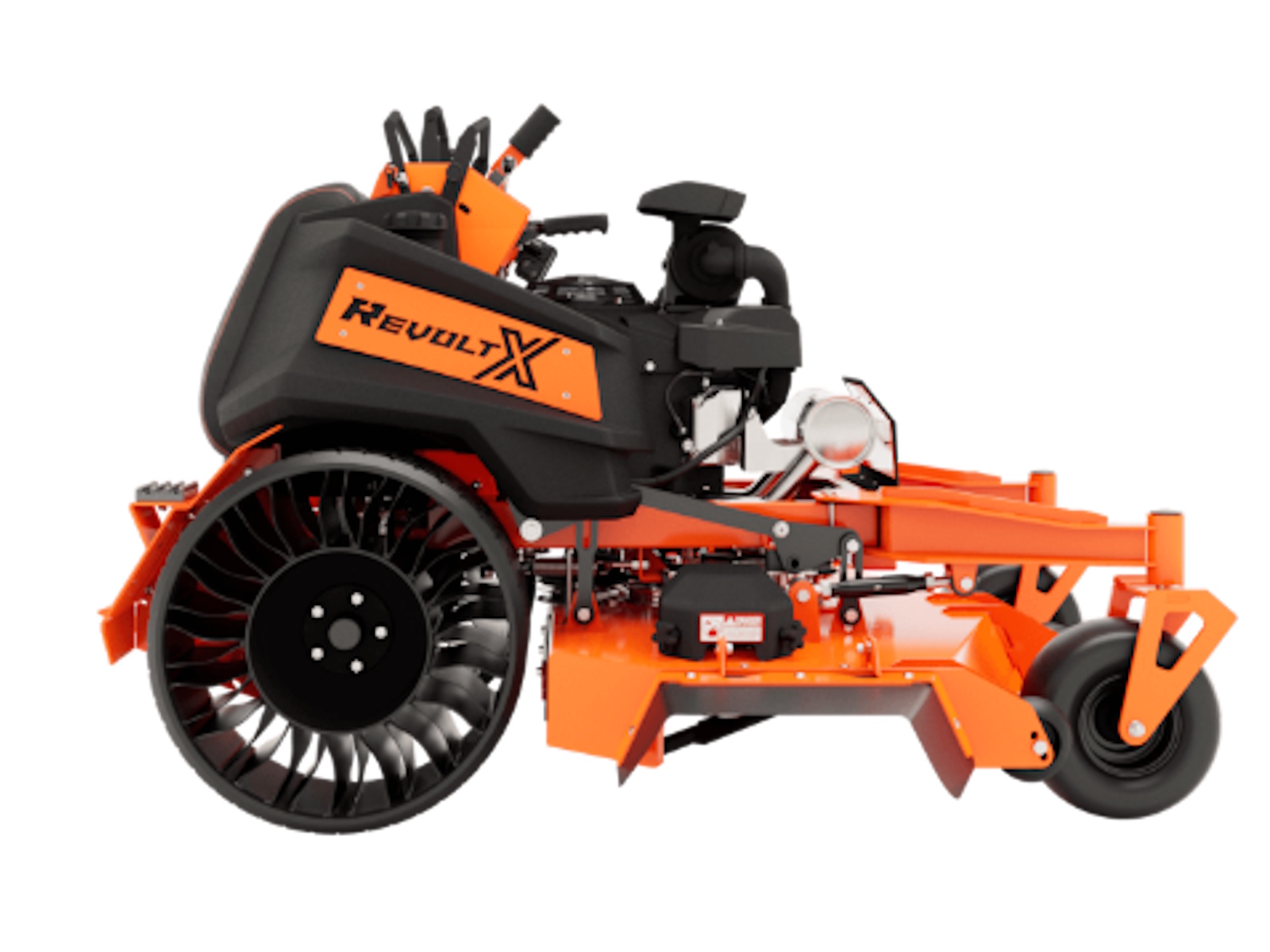 The Revolt X's shorter frame and curved I-Beam front fork give you a lower center of gravity for maximum maneuverability and visibility. With its upgraded operator pad and fender mounted support steps no other stand-on mower can compete with this unbelievably smooth ride.