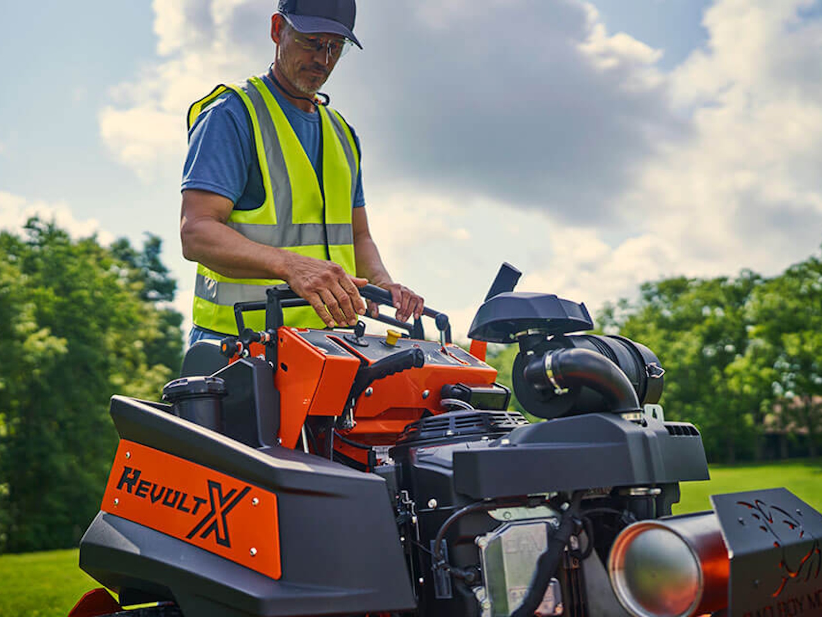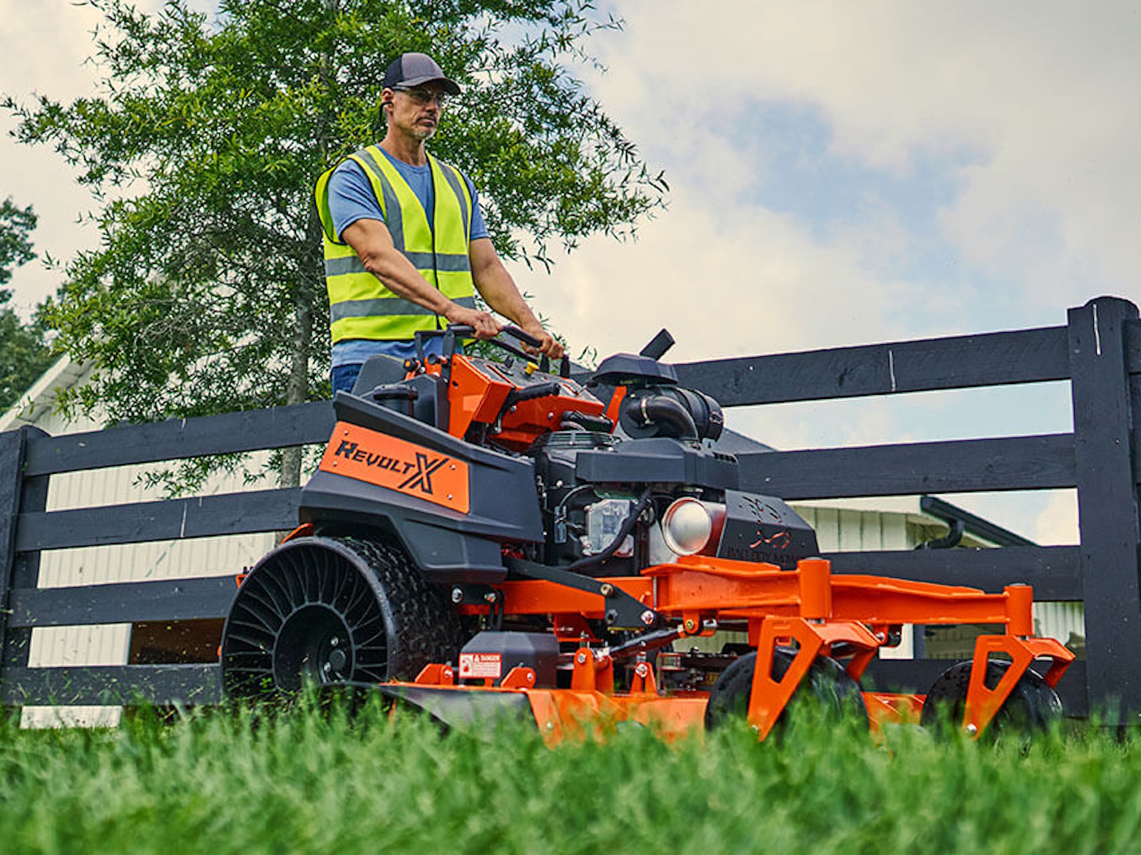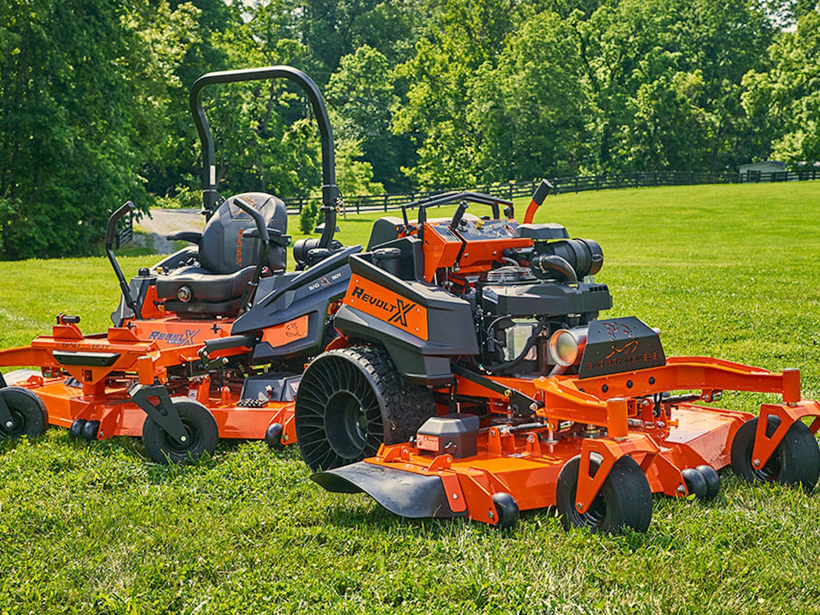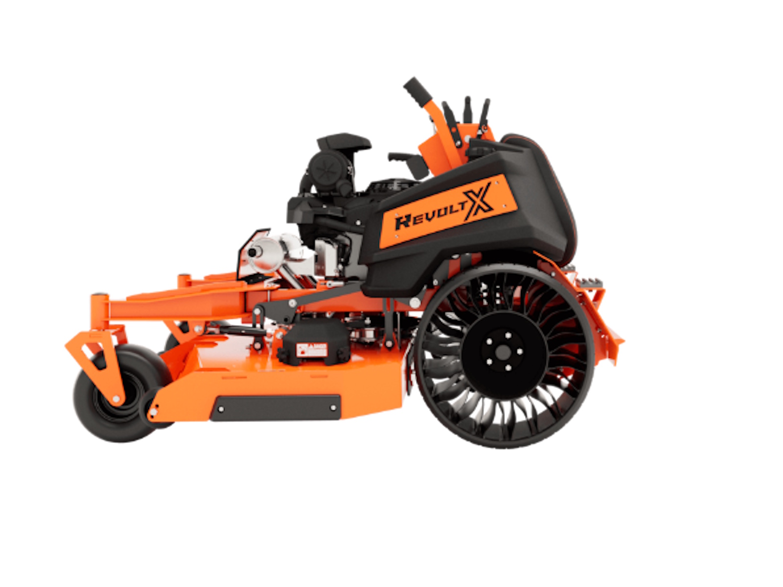 The Revolt X's shorter frame and curved I-Beam front fork give you a lower center of gravity for maximum maneuverability and visibility. With its upgraded operator pad and fender mounted support steps no other stand-on mower can compete with this unbelievably smooth ride.