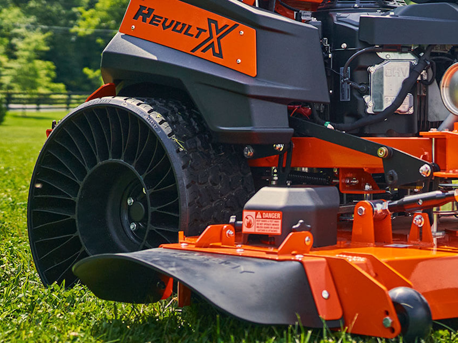 The Revolt X features Michelin® X® Tweel® Turf Tires, providing better hillside traction and stability, with no flat tires, giving you the edge you need to get the job done no matter the terrain.