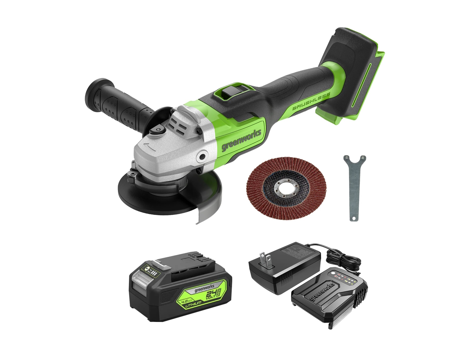 2024 Green Works 24V Cordless Angle Grinder 4.5" w/ 4.0Ah Battery & Charger