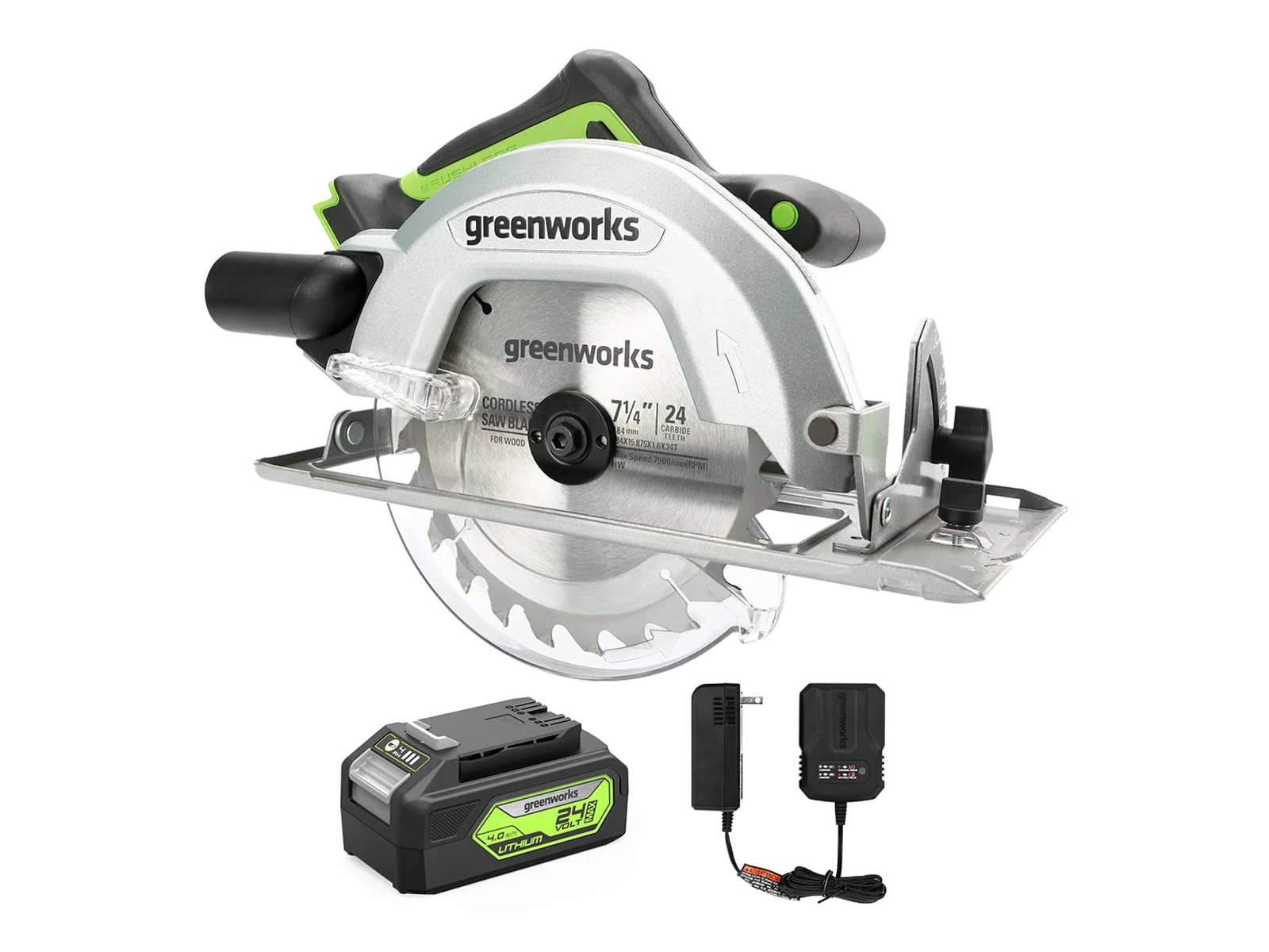 2024 Green Works 24V Circular Saw 7-1/4", Saw Blade & Dust Connector Kit w/ 4.0Ah Battery & Charger