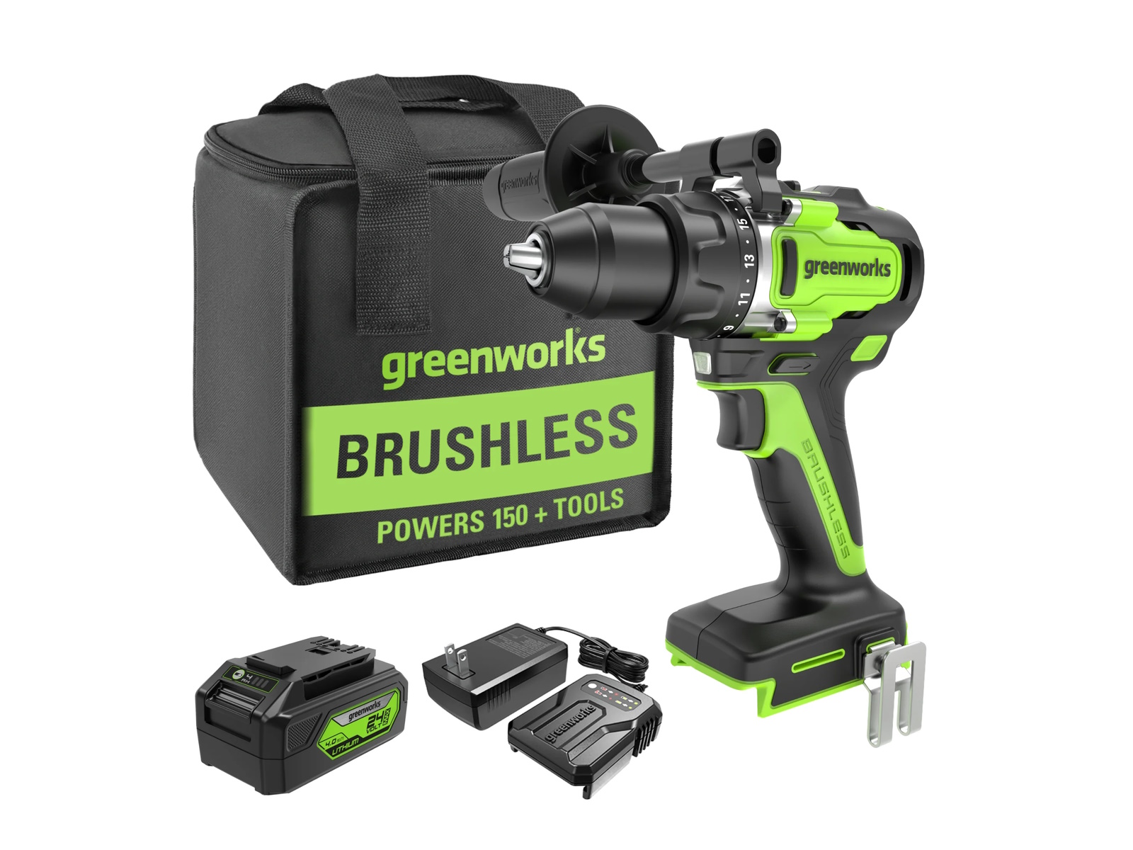 2024 Green Works 24V Cordless 800 in/lbs Drill Driver 1/2" w/ 4.0Ah USB Battery & Charger