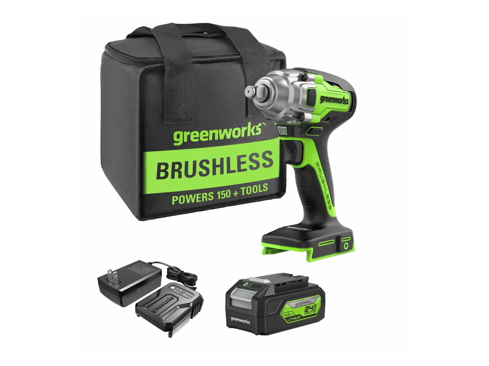 2024 Green Works 24V Cordless Impact Wrench Kit 1/2" w/ 4.0Ah Battery & Charger