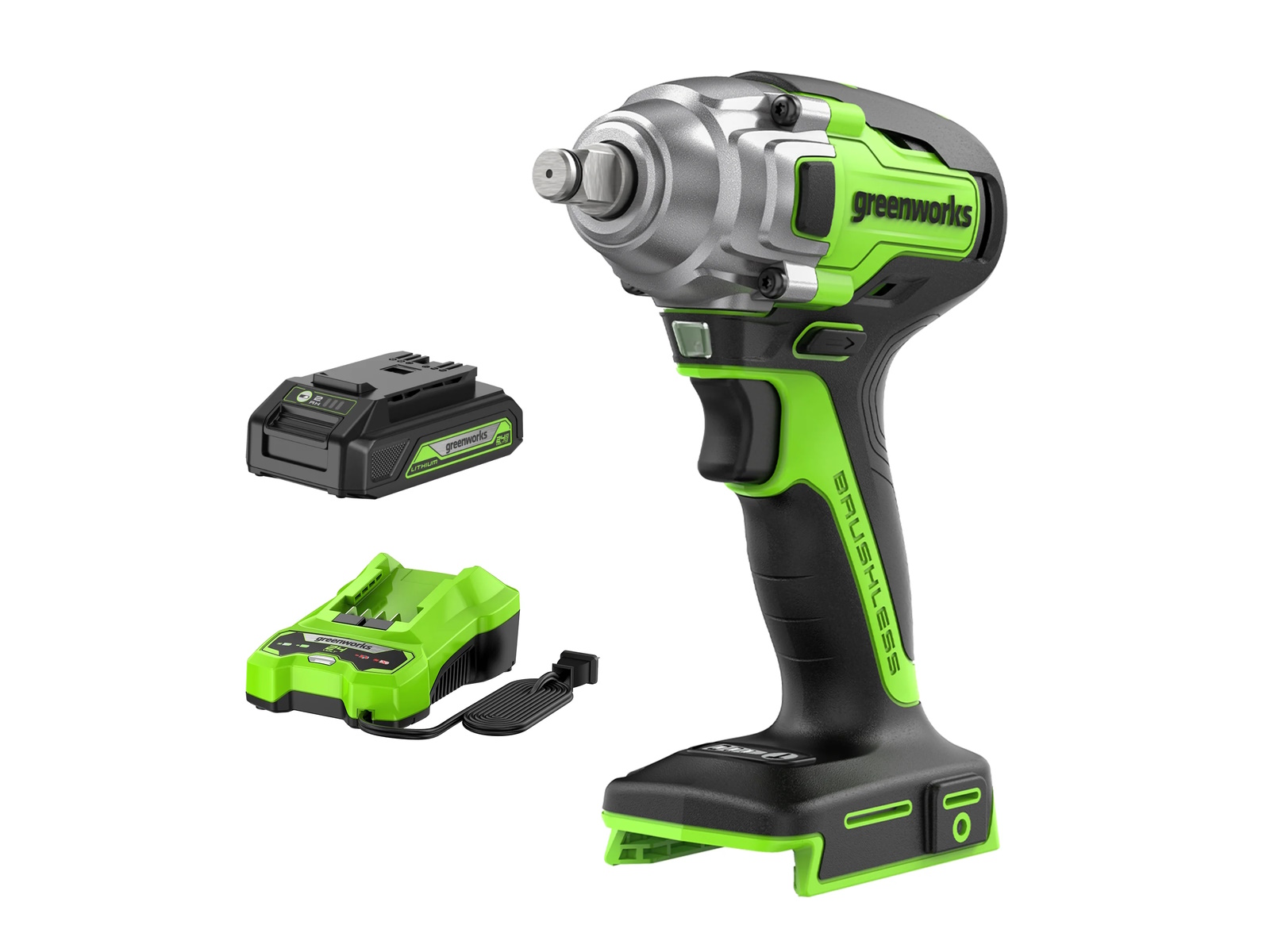 2024 Green Works 24V Cordless Impact Wrench 1/2" w/ 2.0Ah Battery & Charger
