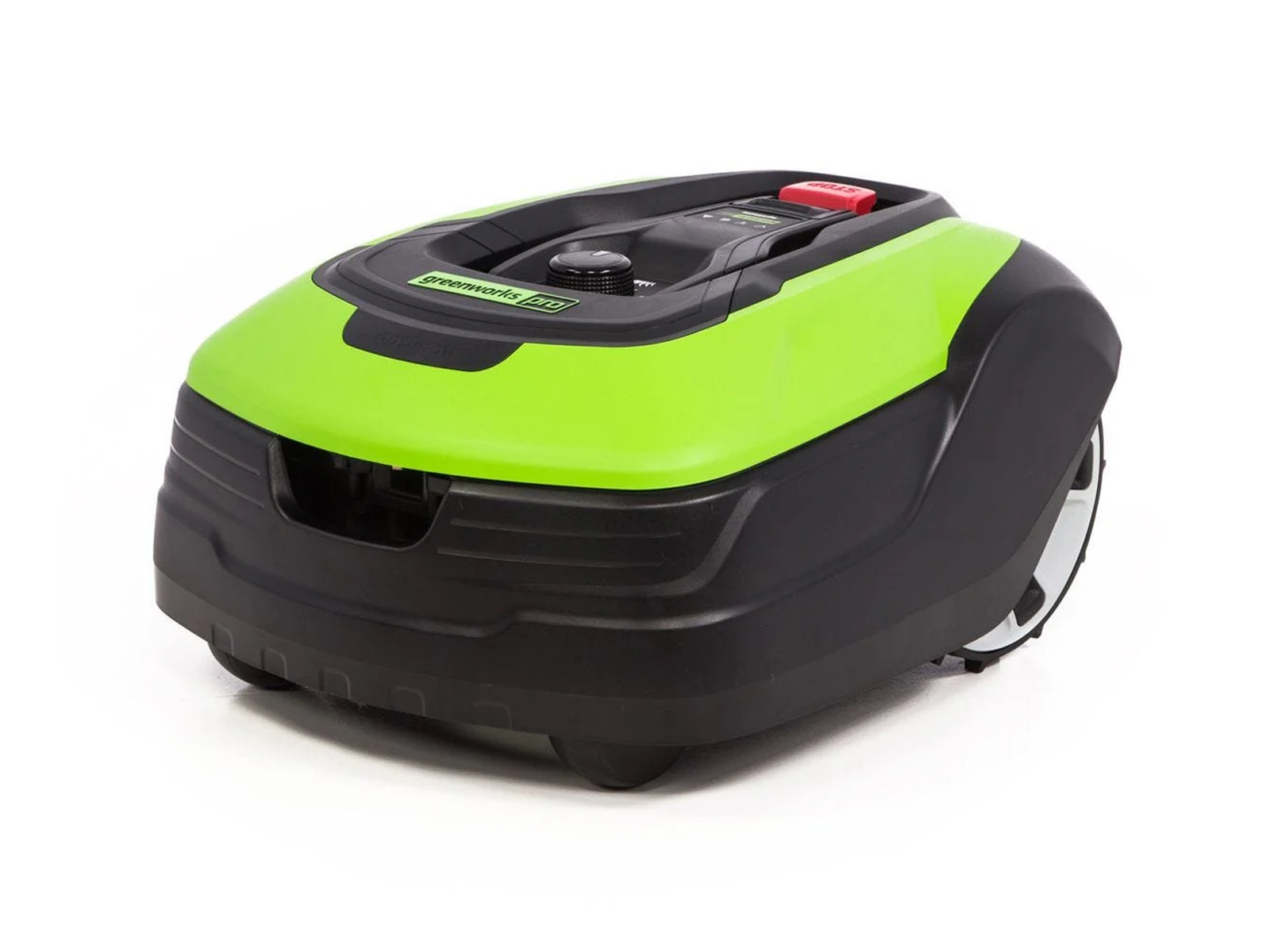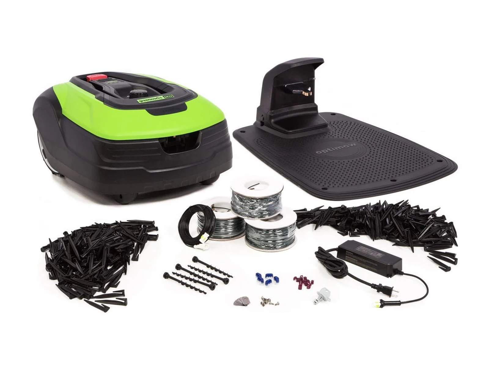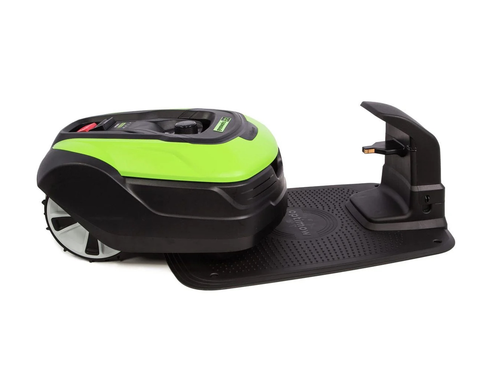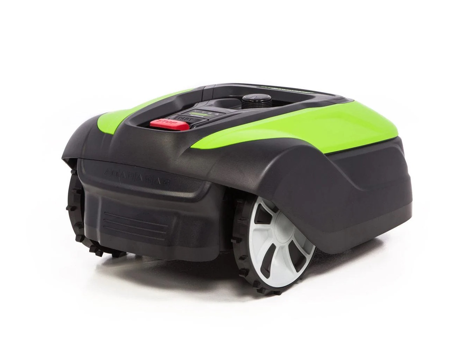 The Greenworks Pro optimow 25H is a fully automated Robotic Lawn Mower designed to expertly maintain lawns up to 1/2 acre. Installation is simple, and all required materials are included. Once installed, the optimow 25H will mow your lawn according to a pre-set, programmable schedule - charging itself when necessary. You will have full control of your robotic lawn mower via the GreenGuide App, where you can monitor or alter settings/schedule from anywhere in the world. The optimow 25H was designed with safety in mind, and features an integrated lifting sensor, collision sensors and rain/frost sensors. Despite its ability to cover large areas, the optimow 25H is highly maneuverable, and its exceptionally low operating noise means you'll forget its even there.