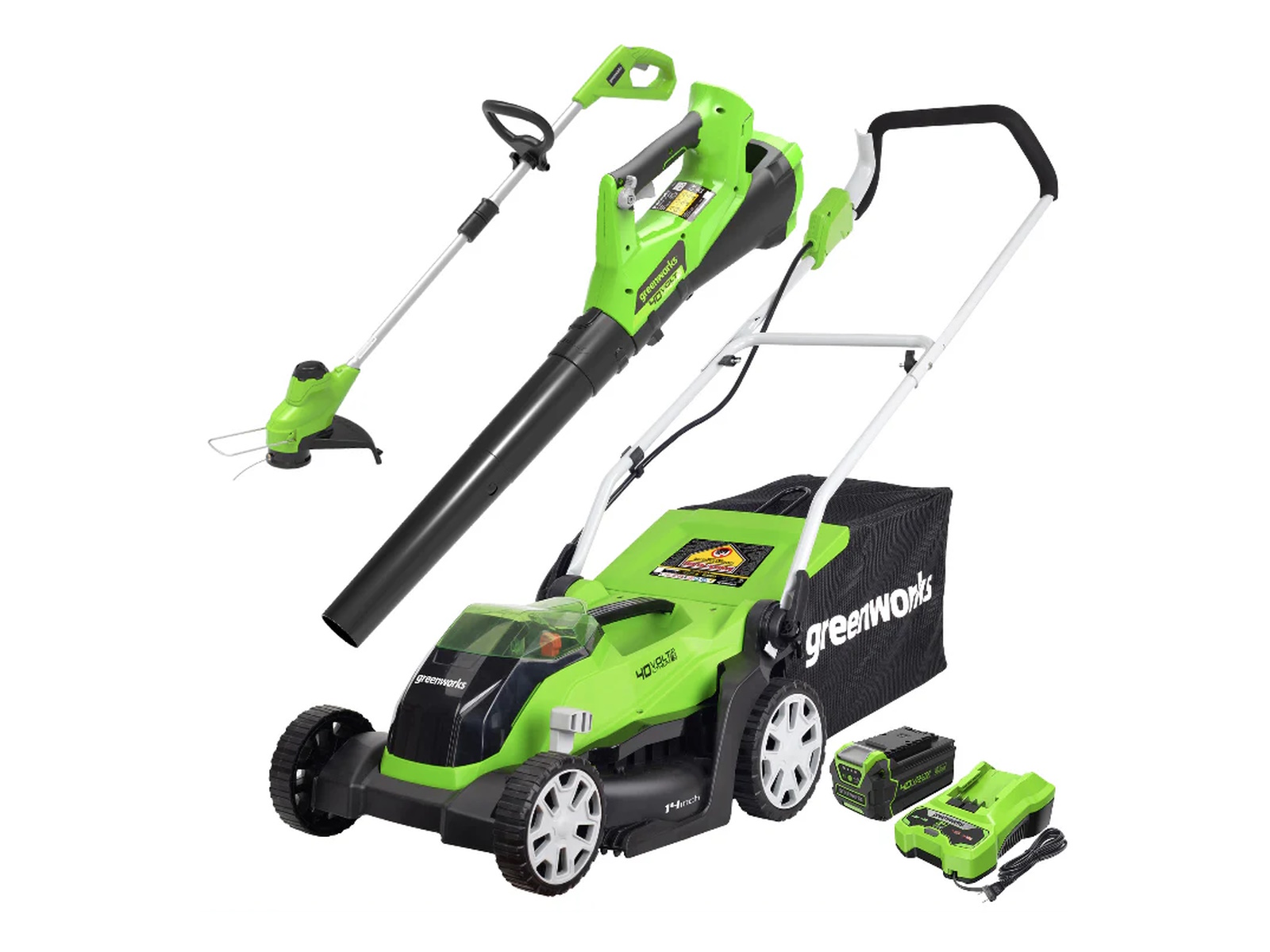 2024 Green Works 40V Cordless Push Mower, Axial Blower & Trimmer Combo Kit
