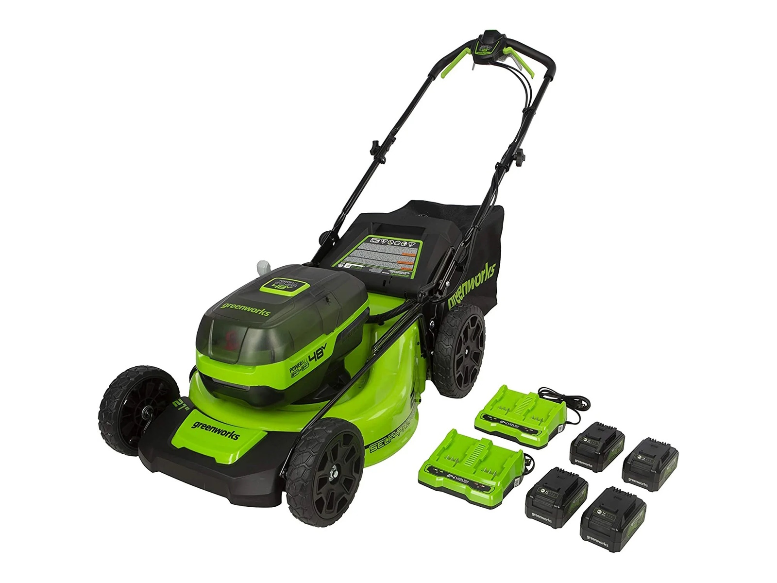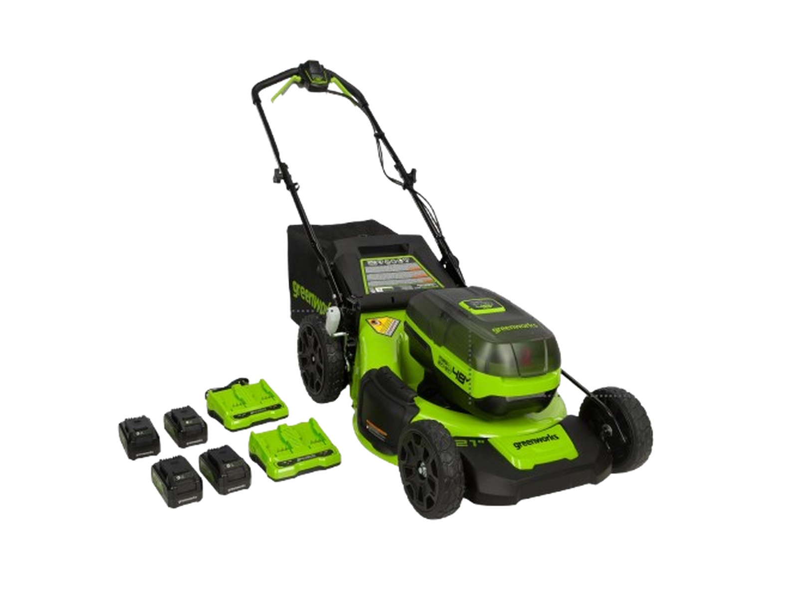 2024 Green Works 48V (2x24V) Cordless 21" w/ (4) 4.0Ah Batteries & (2) Dual Port Chargers