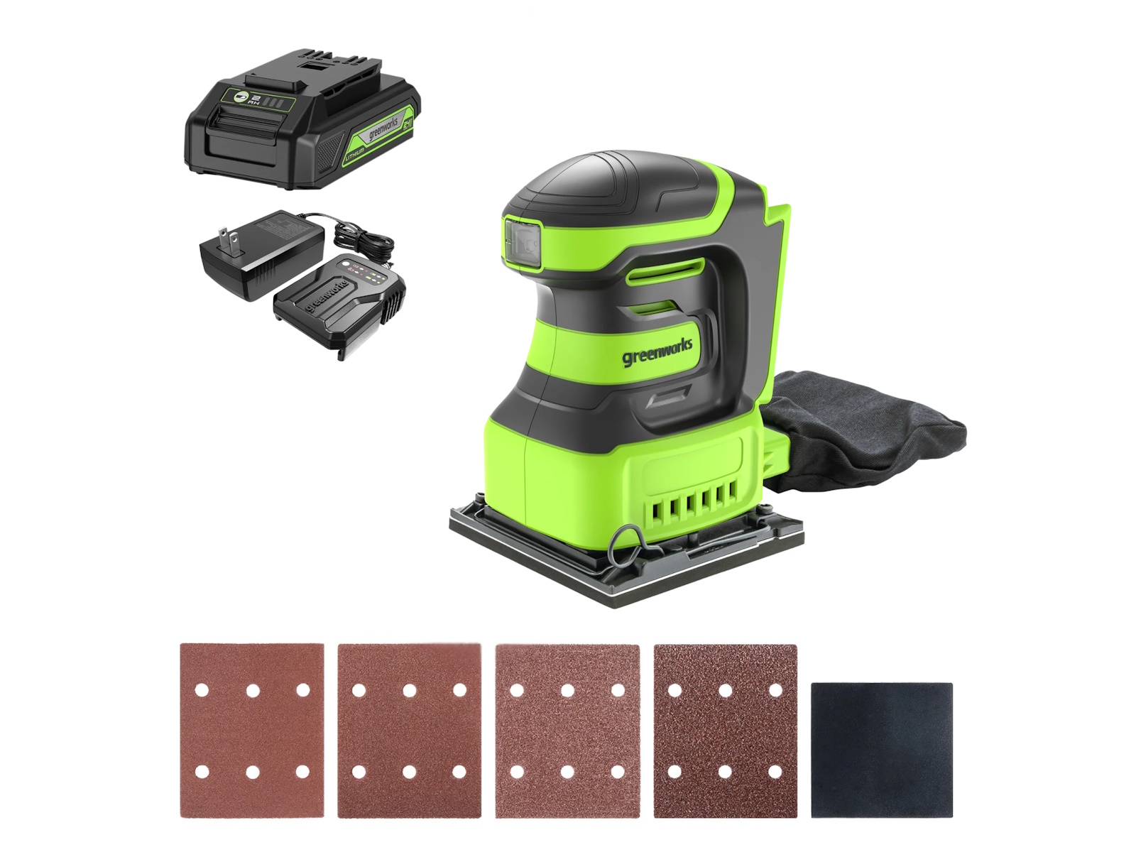 2024 Green Works 24V Cordless Battery Quarter Sheet Sander W/ 2.0Ah Battery & Charger