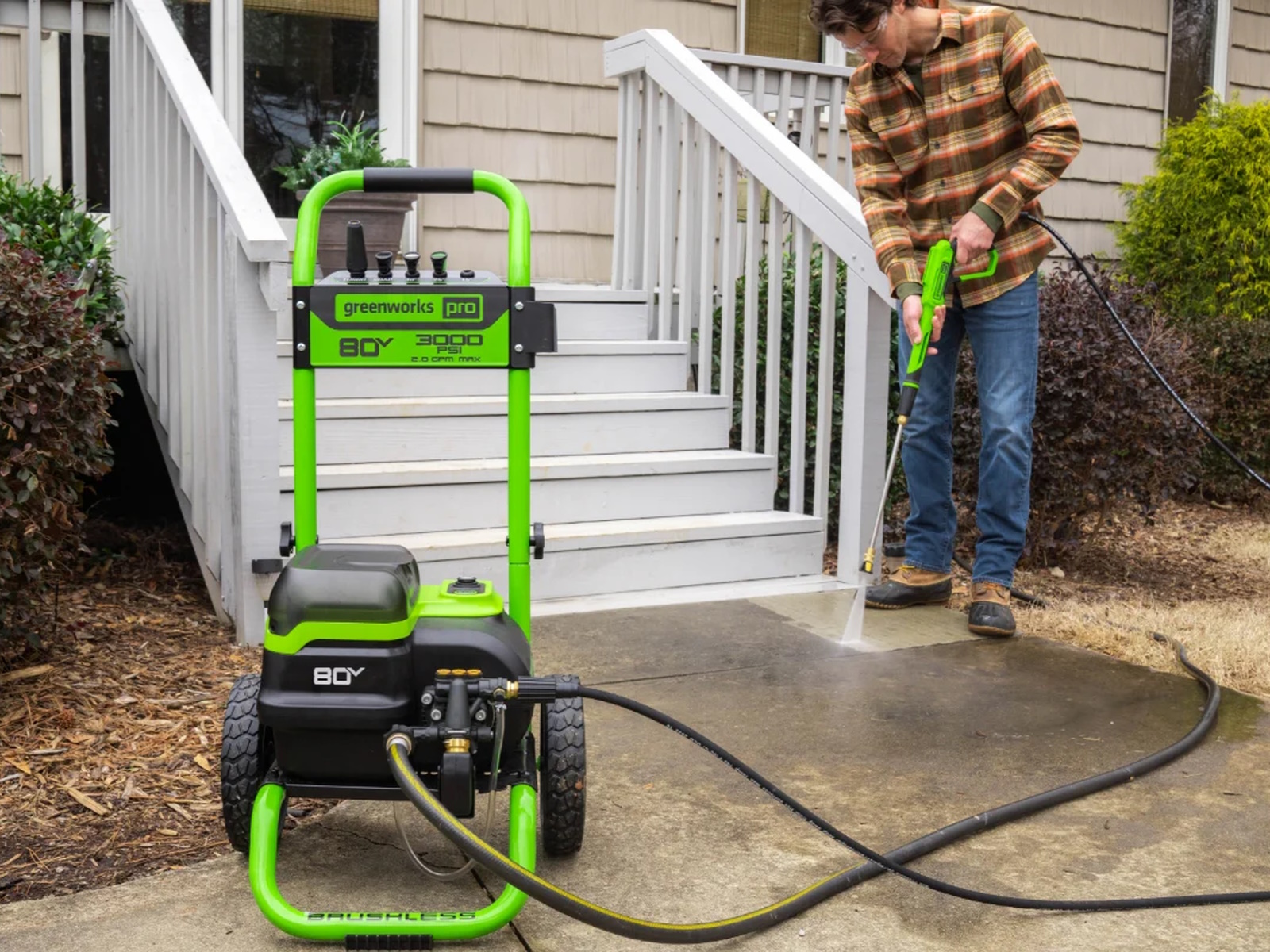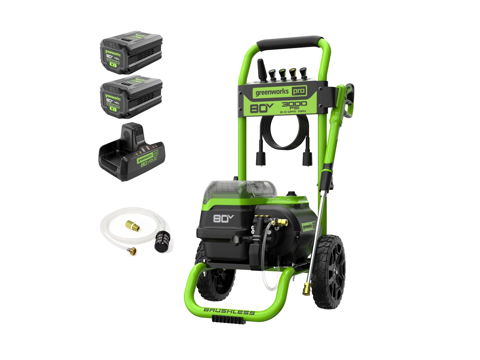 2024 Green Works 60V Electric Pressure Washer 3000-PSI 2.0 GPM w/ (2) 4.0Ah Batteries & Rapid Charger