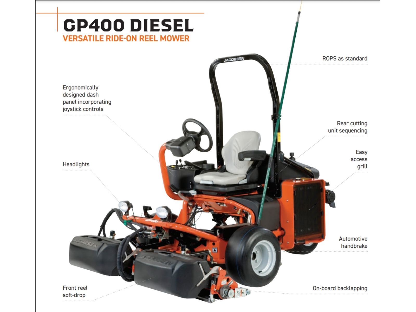 With the GP400 everything is designed to assist you. A swing out center reel and easy maintenance get the mower on the golf course (greens, tees, approaches) quickly, and easy operation and ergonomically designed controls keep you there until the work is done.