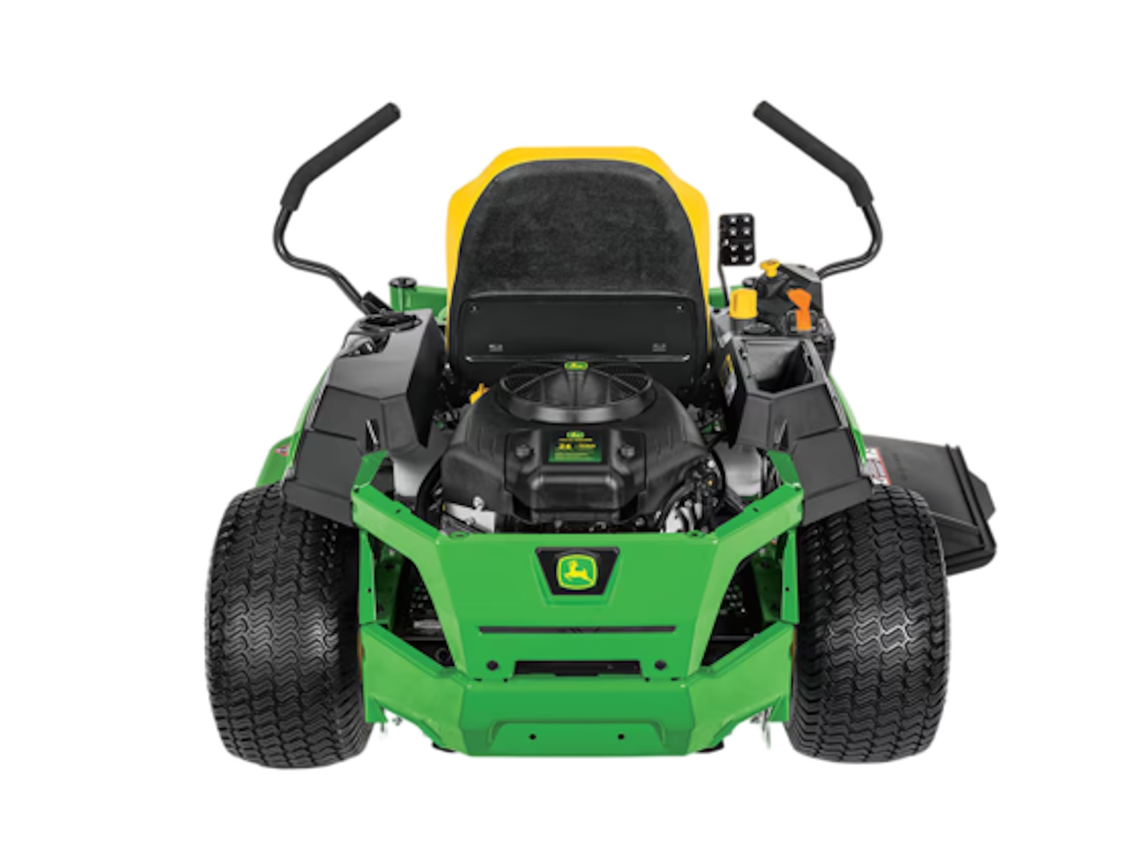 A 24-hp (17.9-kW) V-twin engine with 44.2-cu in. (724-cc) displacement provides plenty of power and torque to handle tough mulching, mowing, and bagging conditions:
