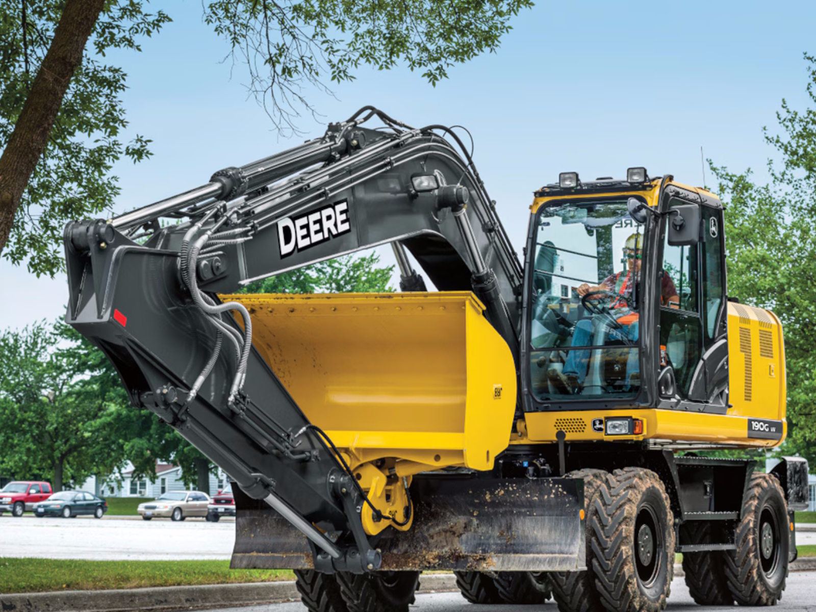 Need to roll out some serious mid-size excavator muscle with a maneuverable wheelbase? How about running on massive jobsites and between projects without having to trailer the machine? Could a variety of boom, blade, bucket, and outrigger options push your operation to new levels of productivity? If your jobs include earthmoving, transporting materials, loading trucks, clearing ditches, installing utilities, or building or maintaining roads, the street-smart John Deere 190G W Wheeled Excavator can be the well-rounded solution you need to dig in, get to work, and move on to the next job, and all the ones after that.