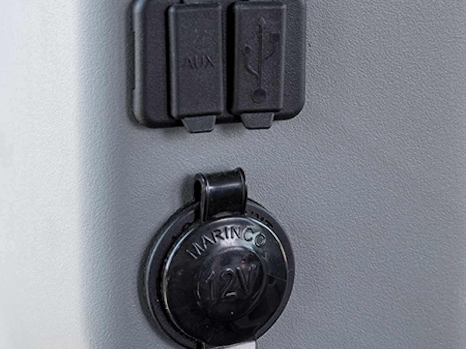 - Additional 12 Volt power ports have been strategically placed for proper powering of devices and a USB port has been added for connecting to the radio