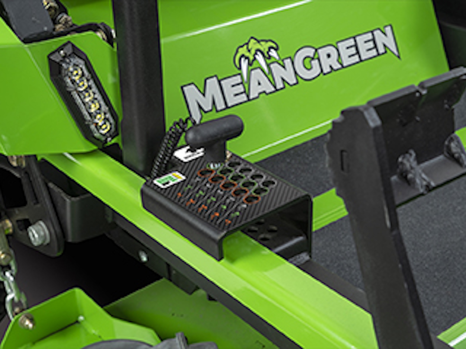 Control blade speed and drive speed with touch screen. Also includes display for machine operation status and service notifications. - FOOT OPERATED LIFT DECK