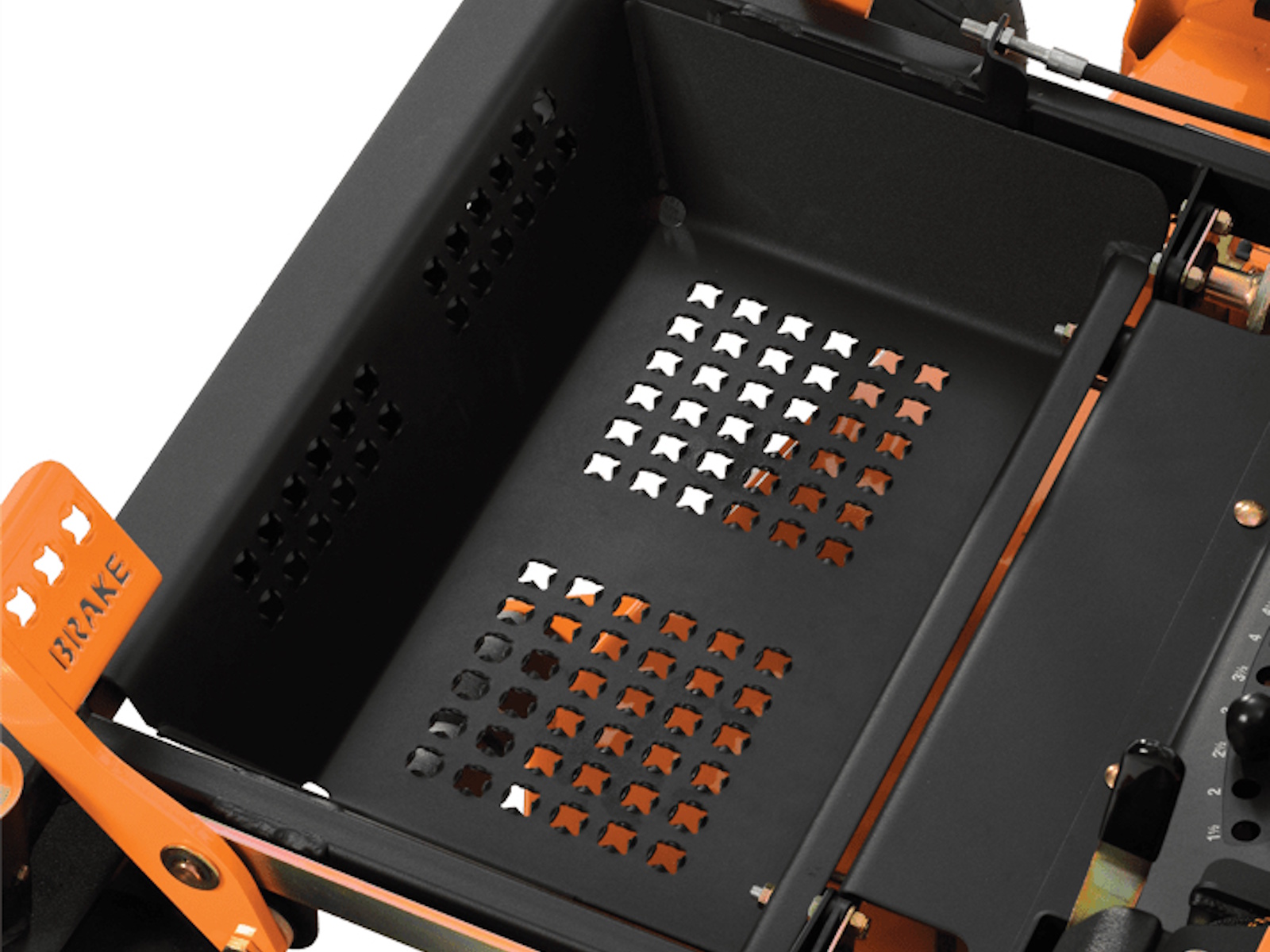 - Pierced, extruded-steel footplate is rubber iso-mounted for enhanced comfort.