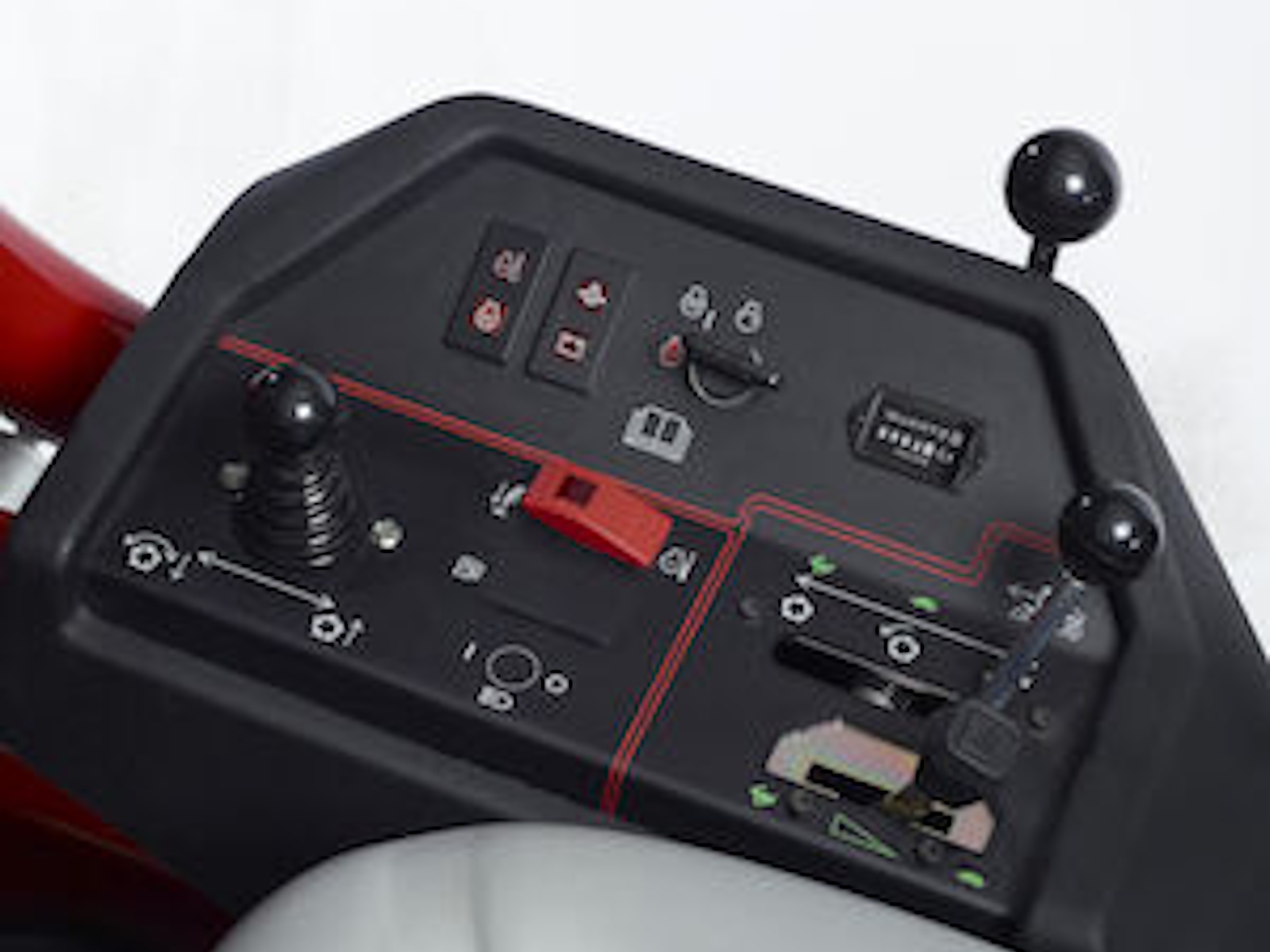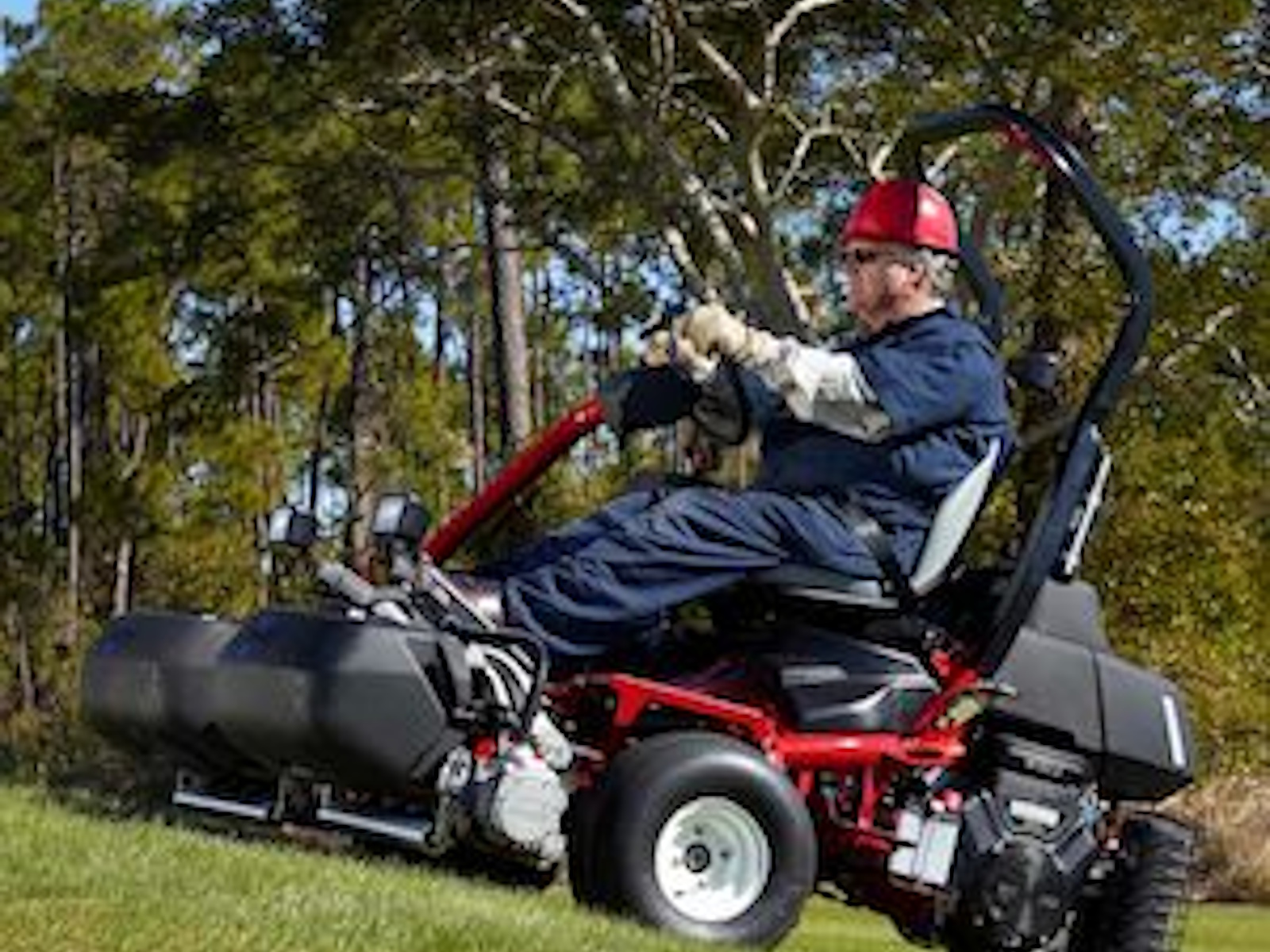 - Placement of the center cutting unit gives the machine much higher hillside stability.