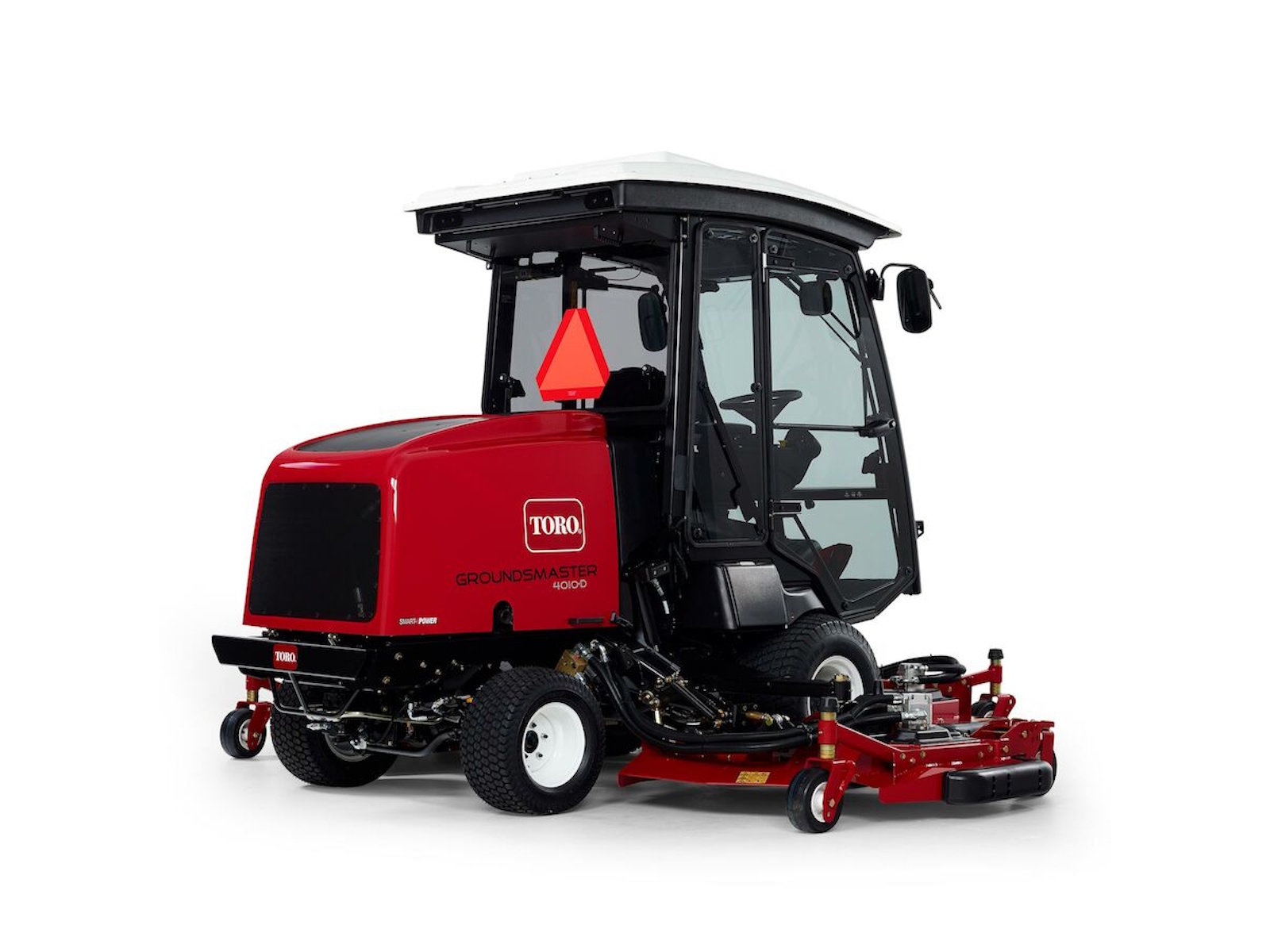 The parallel hydraulic traction system maintains consistent hydraulic flow between the front and rear wheels to assure full time 4-wheel drive. This allows you to mow with confidence, even on hills and wet grass. Operators can enjoy mowing productivity in a climate-controlled, all-season safety cab with the Groundsmaster 4010-D.