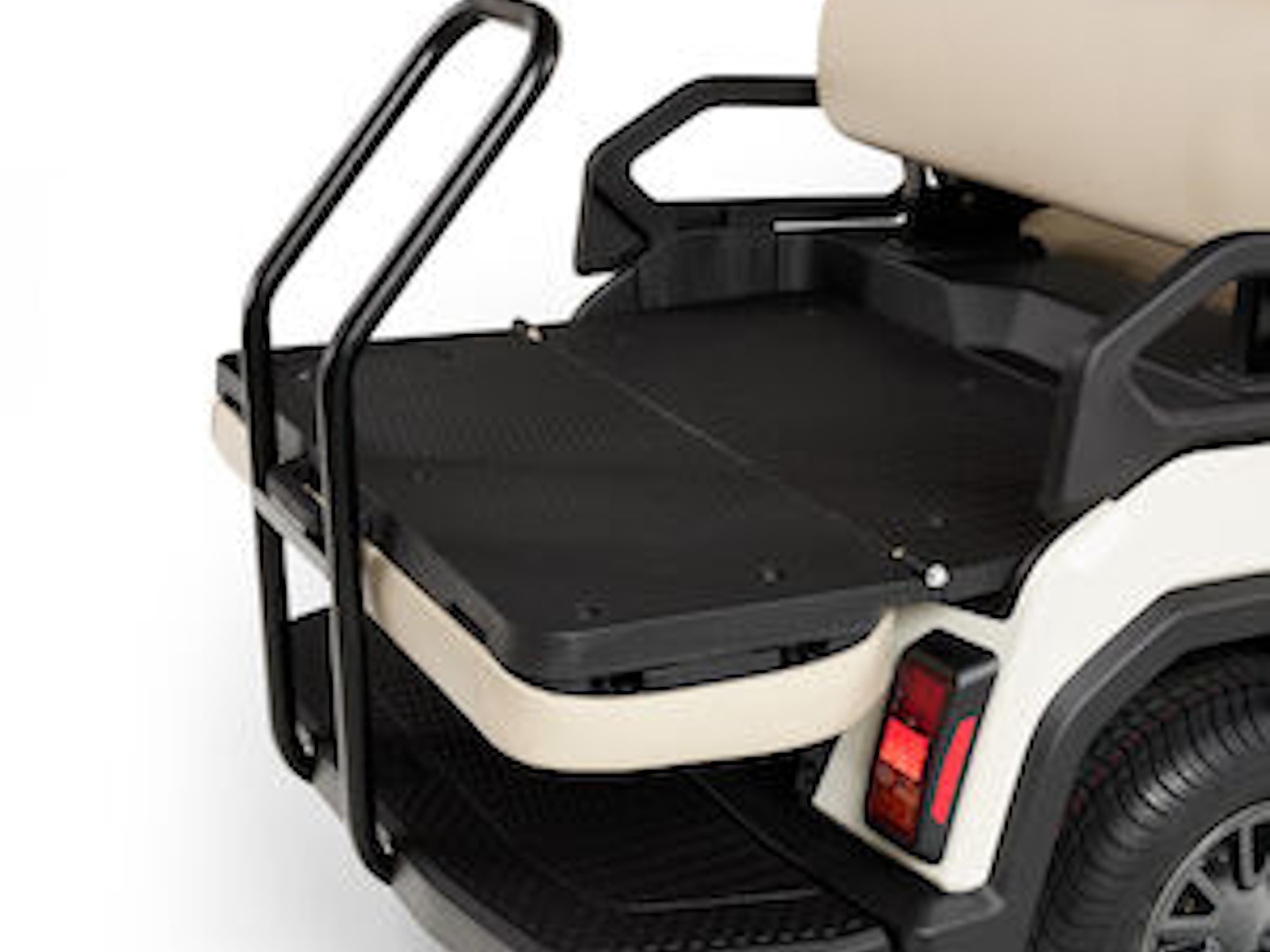 - The rear seating section easily folds down to provide a flat surface for baggage and other cargo during transport.