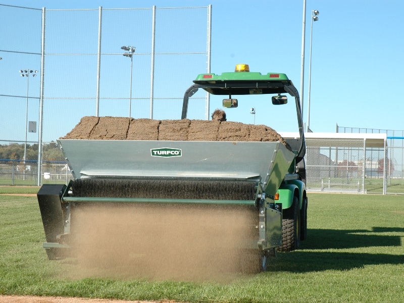 - Wide hopper design is easily loaded with front-end loader or the Turfco® CR-15.