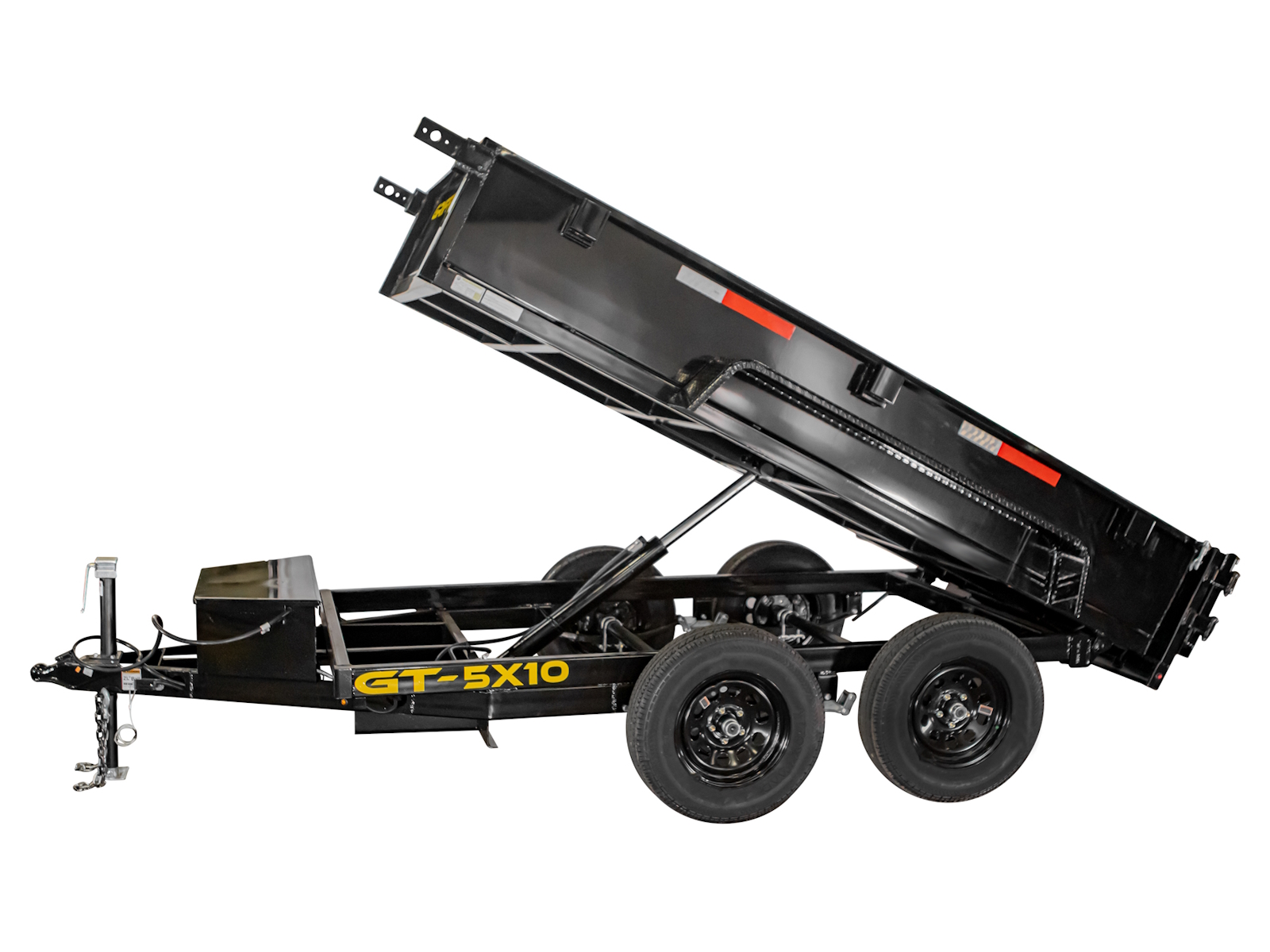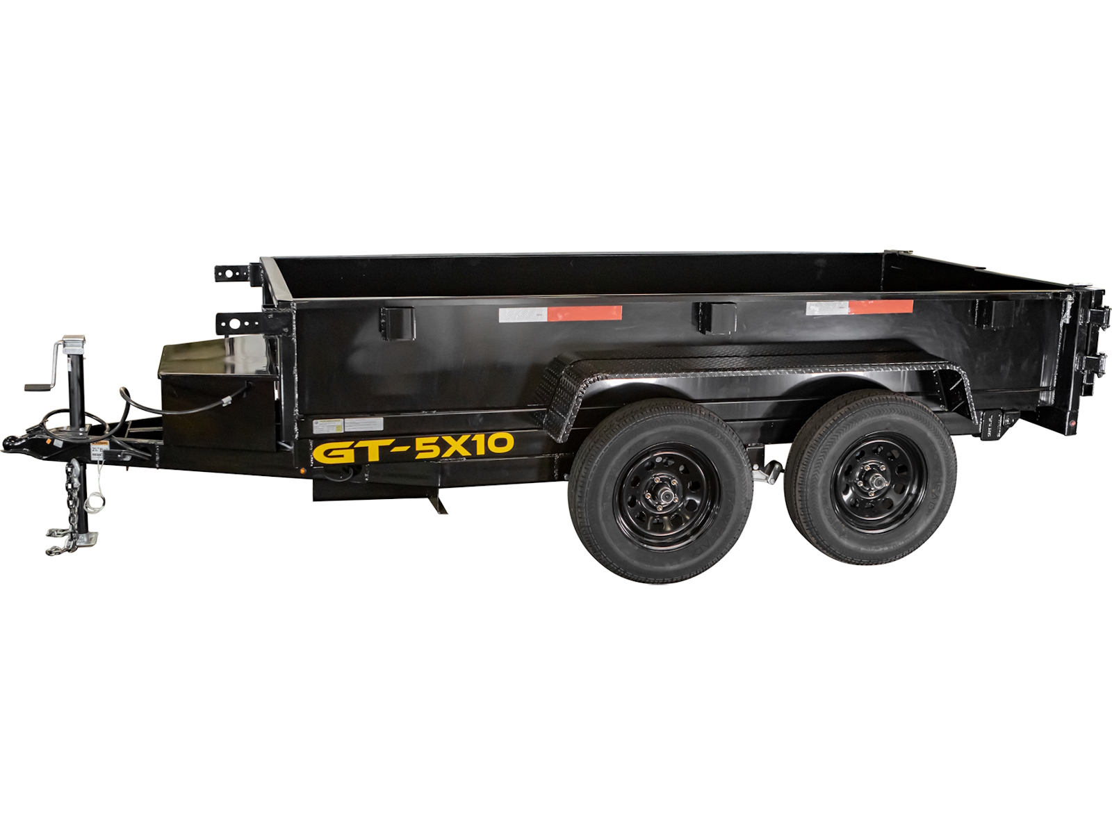 The GT-5X10 is our affordable 5X10 dump trailer featuring a 10-foot bed length and a tandem axle to accommodate more payload than the GT-5X8. The durable design gives even the home project enthusiast a commercial quality hauler at an affordable price.