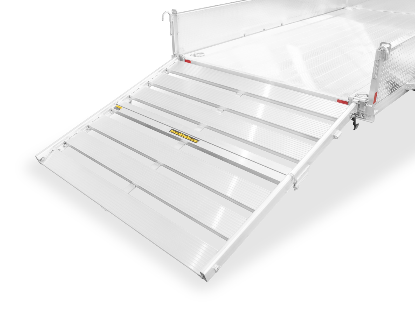 High-strength aluminum wheels improve towing efficiency while maintaining a sharp, polished appearance. - Bi-Fold Aluminum Rear Ramp Gate – Easy Loading and Transport