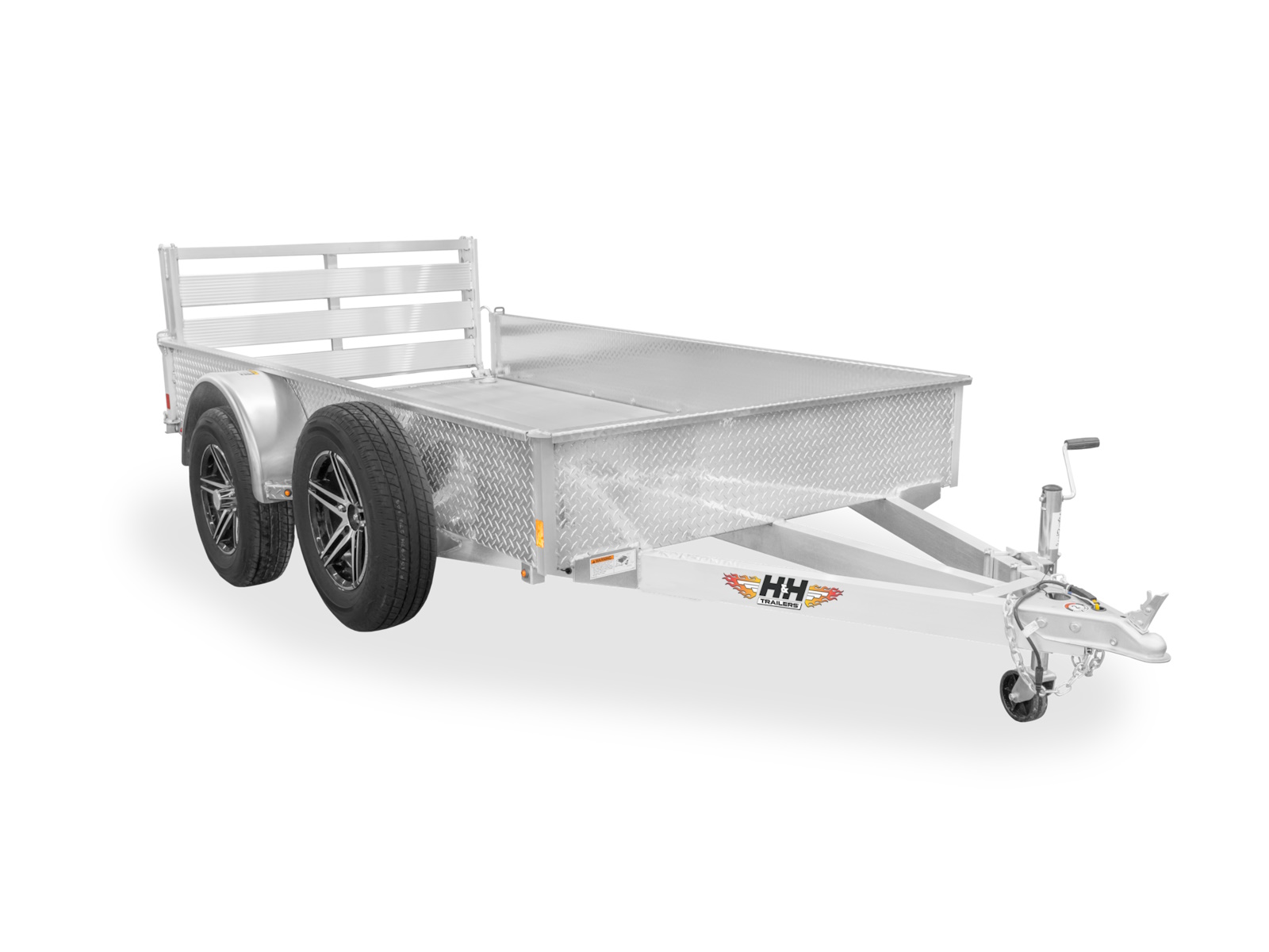 The polished diamond plate sides resist corrosion and wear while giving the trailer a clean look that’s built to last. - Aluminum Wheels – Lightweight Performance